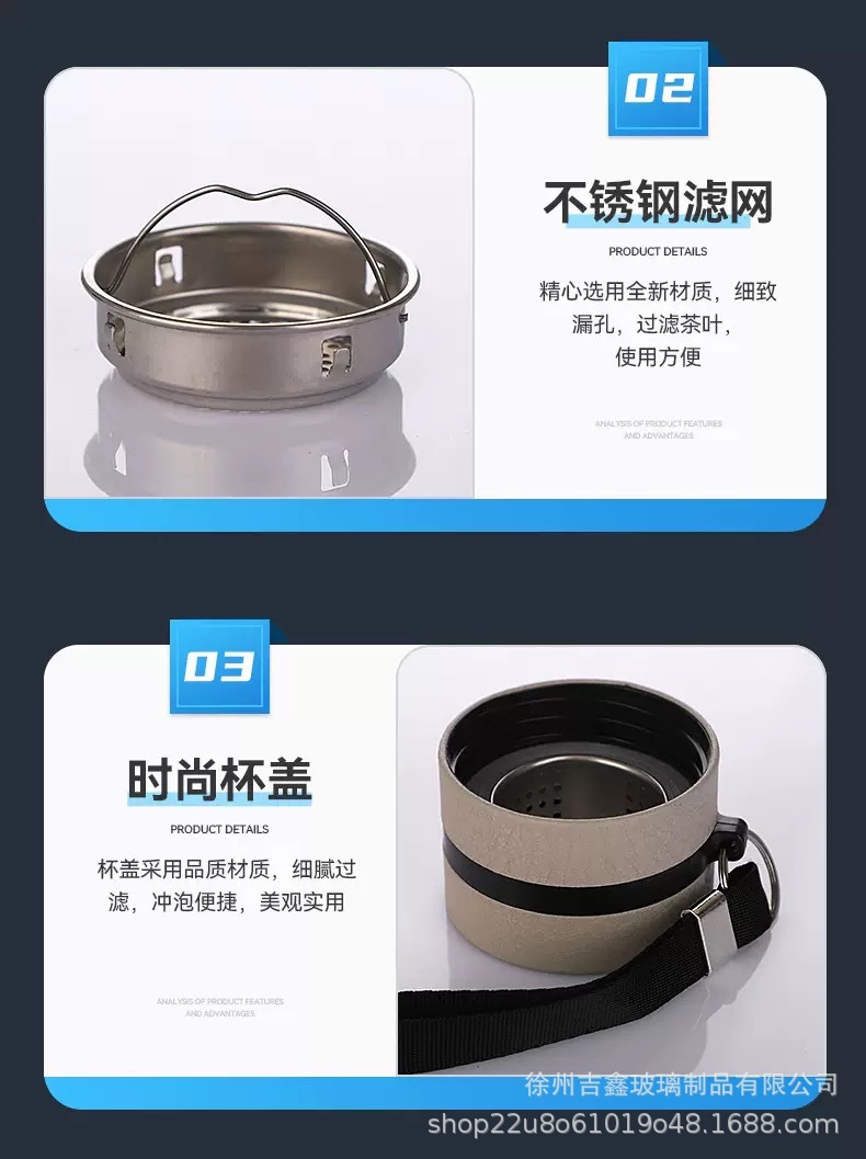 家庭用オフィス用二層大容量ガラスカップポータブルフィルター茶水分離ティーカップ卸売印刷