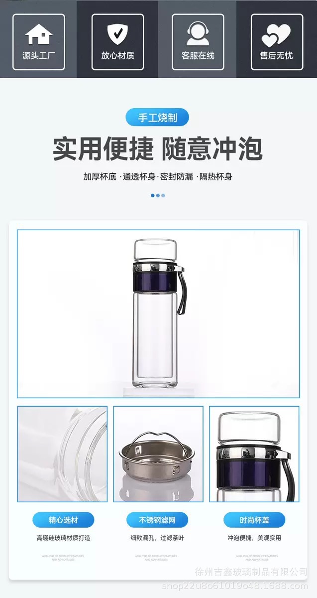 加厚防爆保温双层玻璃杯茶水分离水杯便携杯子办公室泡茶杯高硼硅