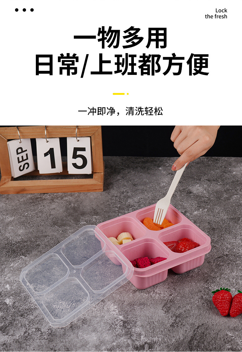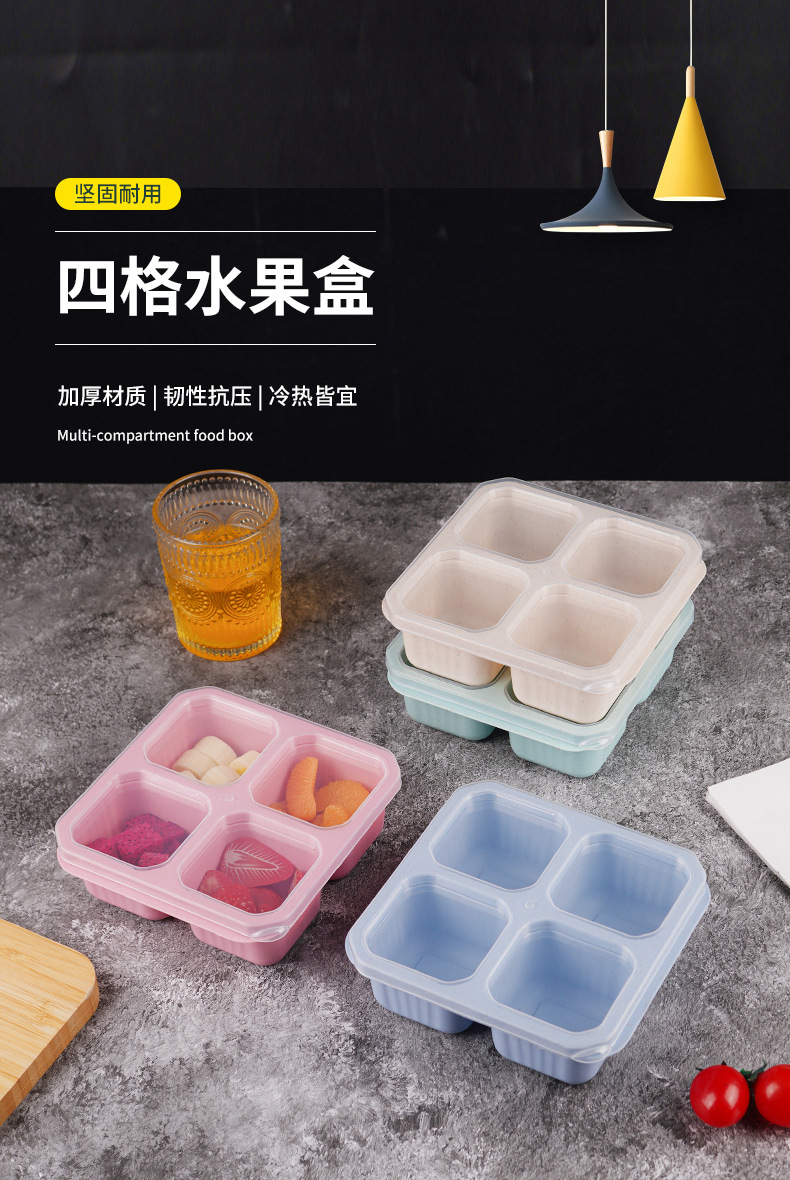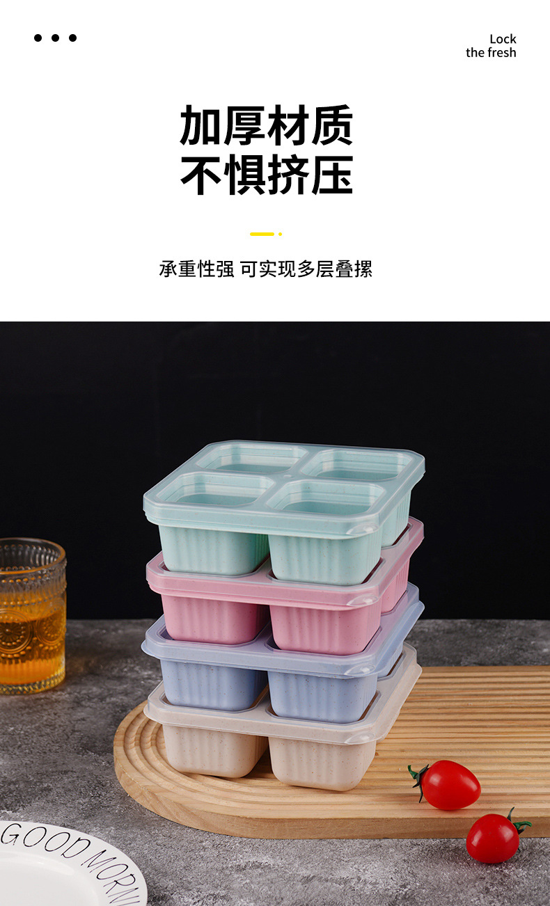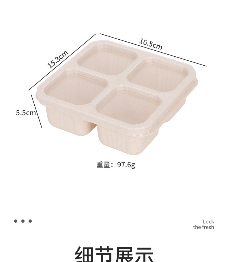 跨境热卖小麦秸秆四格饭盒学生上班族便当盒便携高颜值分格午餐盒