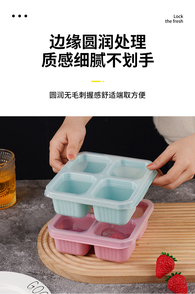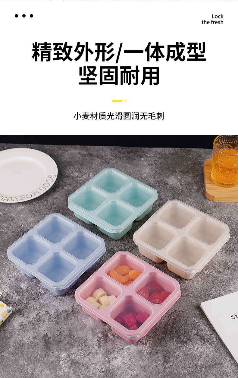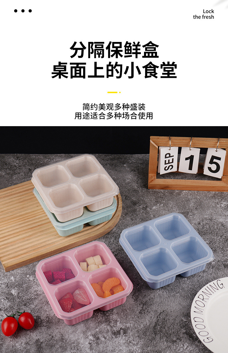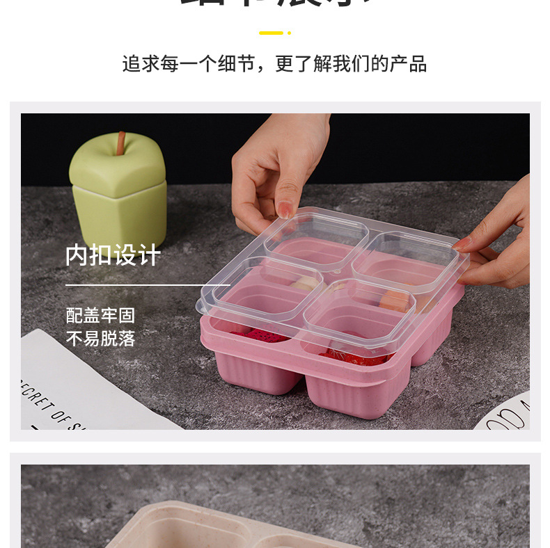 跨境热卖小麦秸秆四格饭盒学生上班族便当盒便携高颜值分格午餐盒