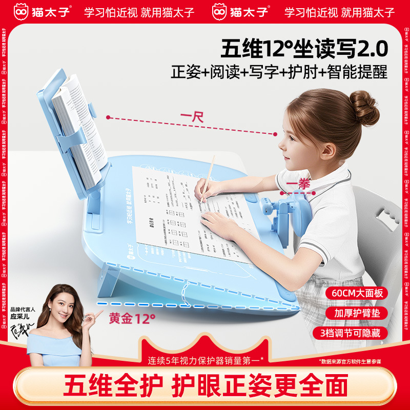 猫太子学生视力保护器坐读写12度儿童坐姿器写作业坐姿矫正器桌板