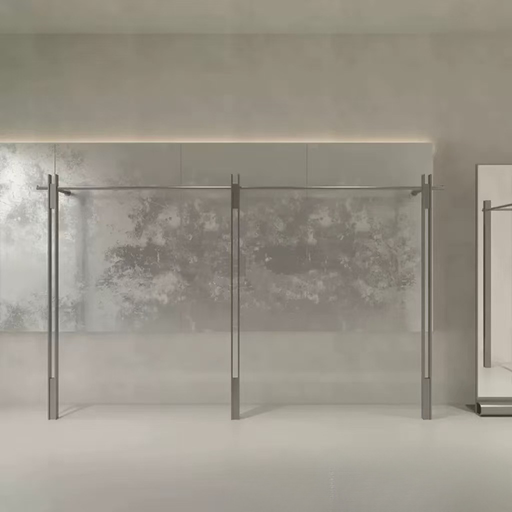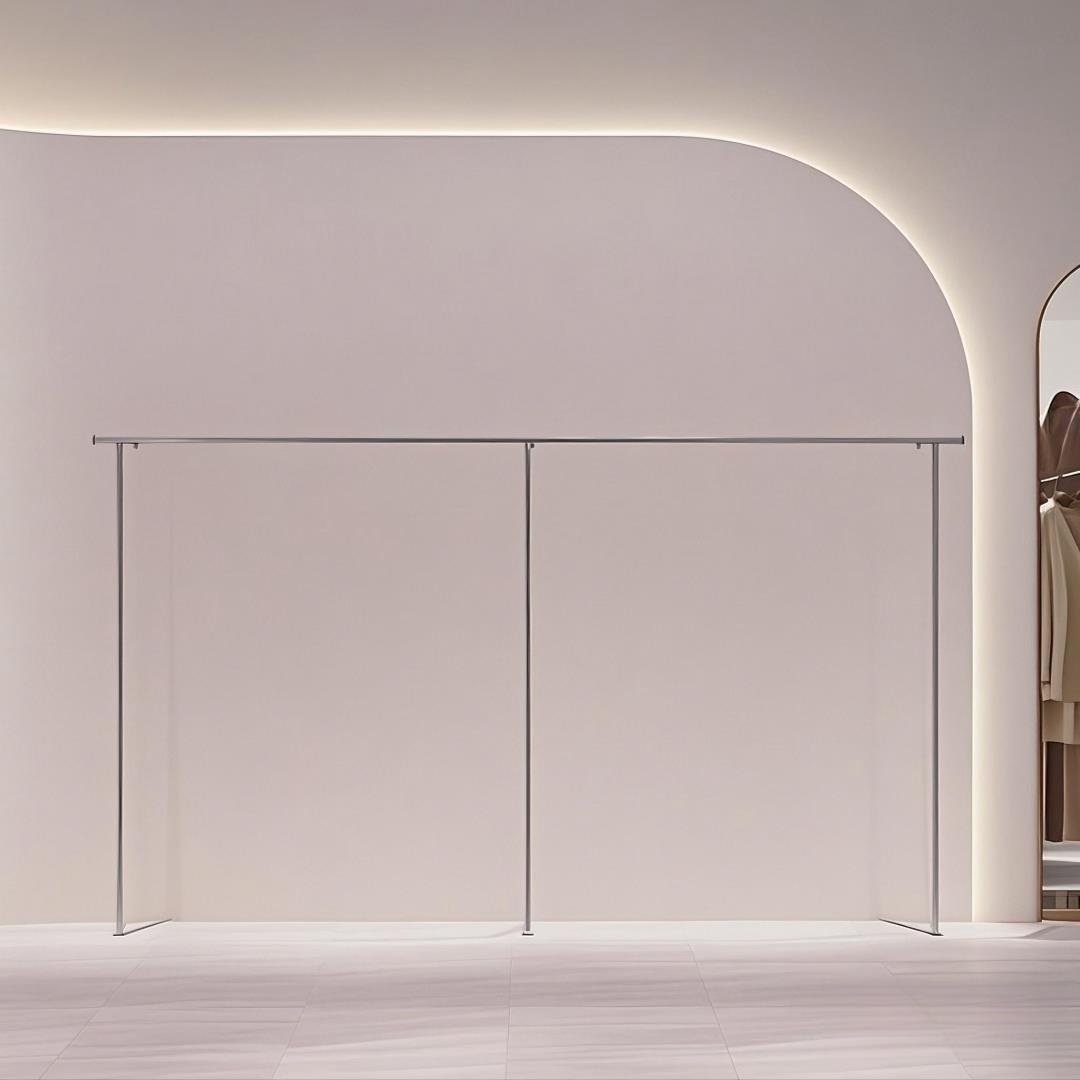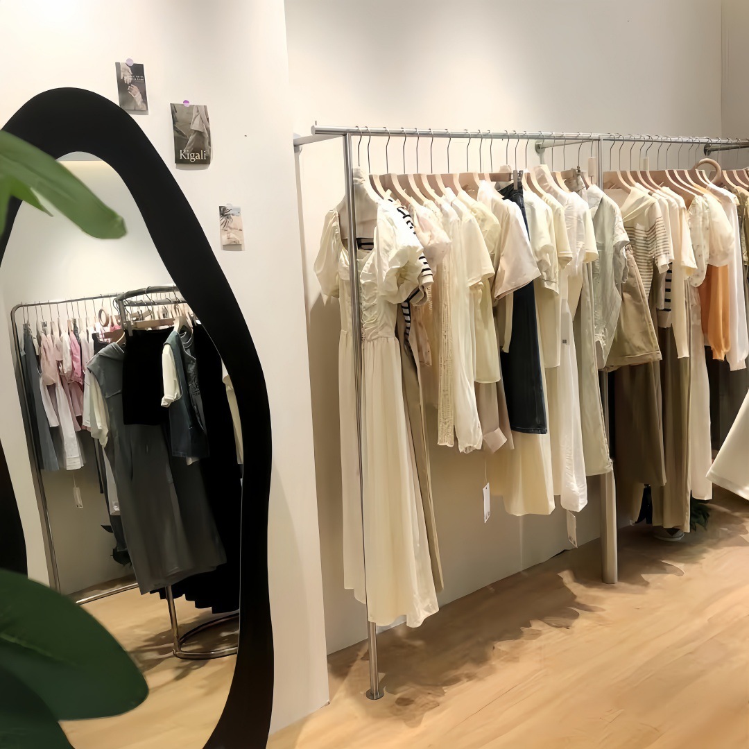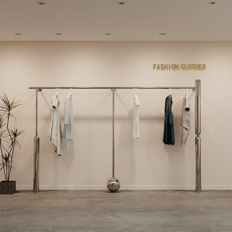 洋服店の壁に取り付けられたステンレス製ハンガー子供服陳列棚棚女装店床置き展示棚