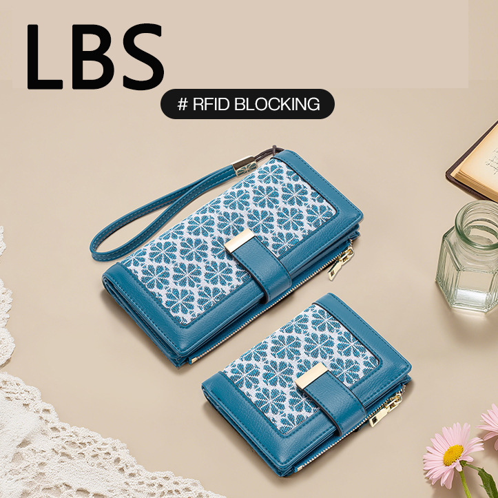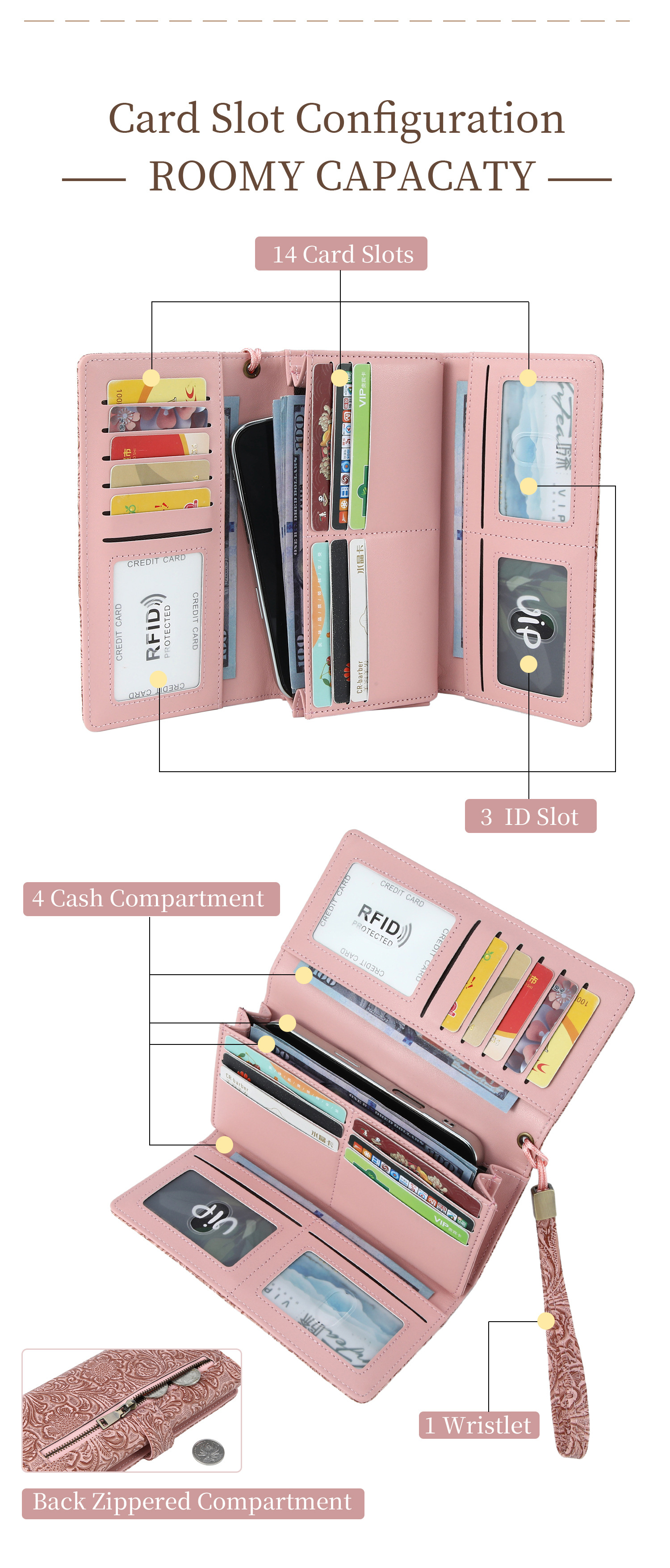 新款rfid长款钱包卡包二折钱包压花超纤皮革女士包袋功能小包