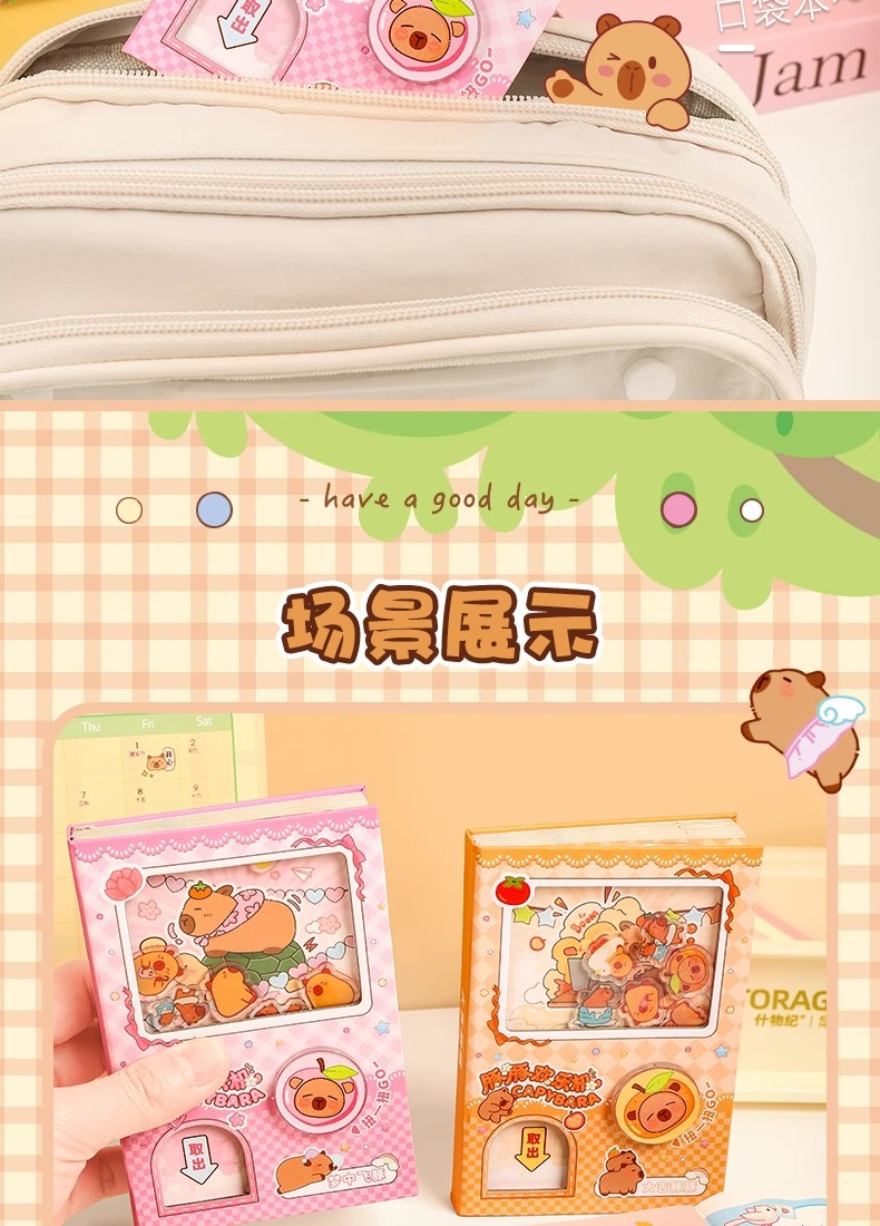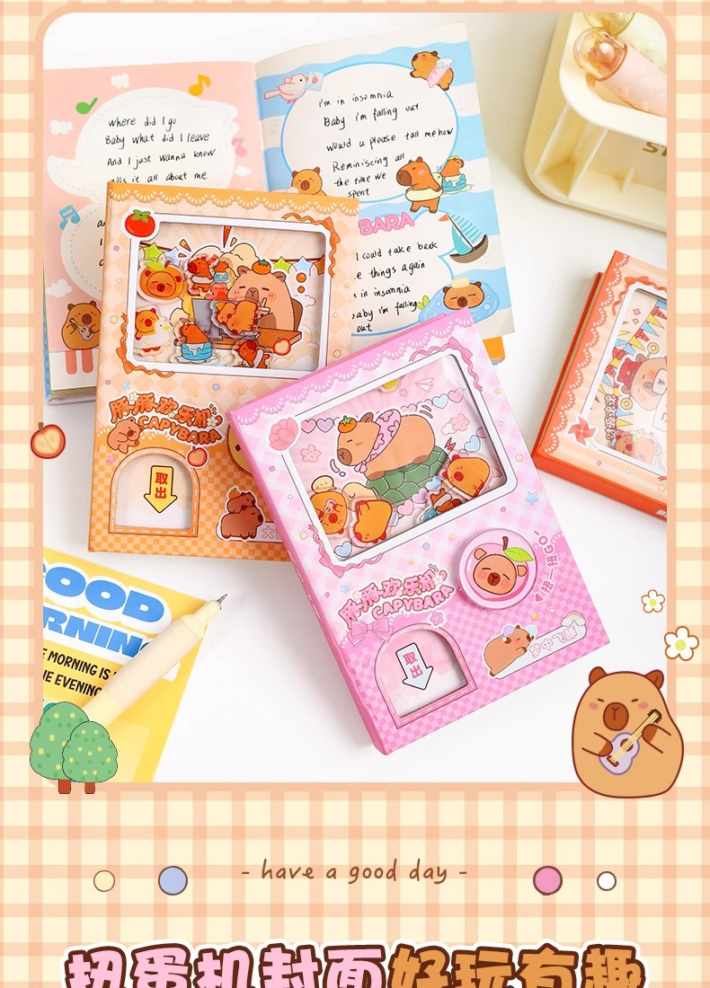 卡皮巴拉扭蛋机关本子可爱卡通机关笔记本趣味文具口袋手账便签本