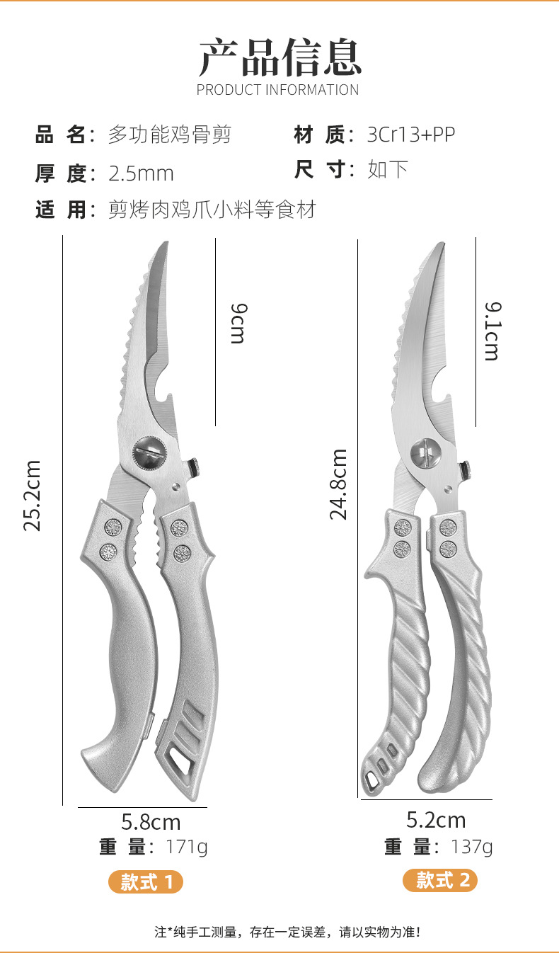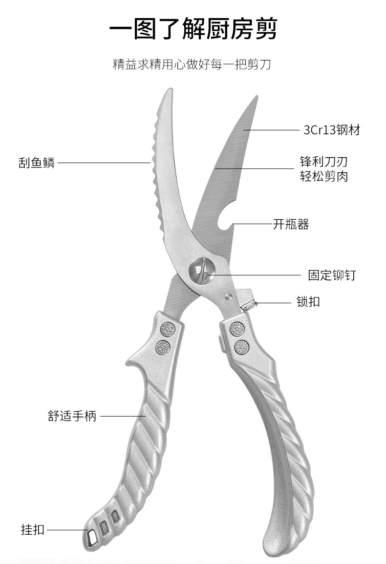 鸡骨剪不锈钢高硬度锋利厨房剪骨头鱼鳞不锈钢多功能强力去骨剪刀