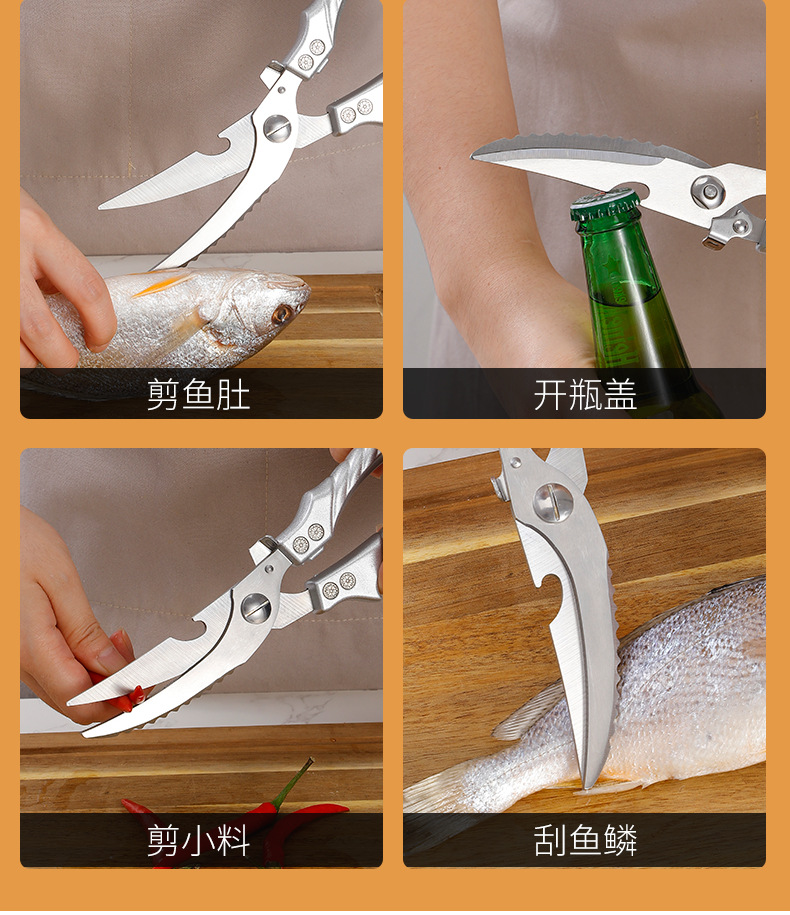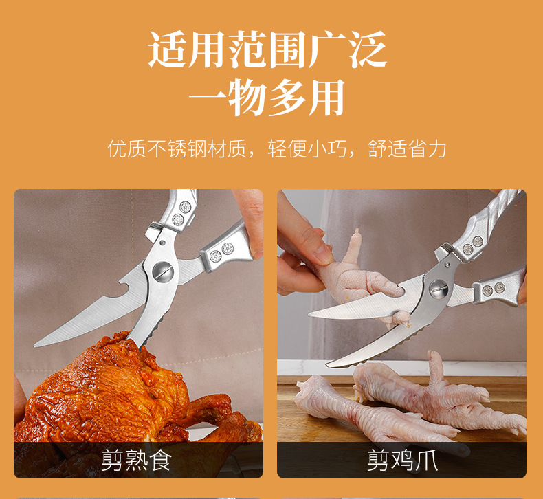 不锈钢鸡骨剪家用多功能强力剪刀鱼鸡鸭鹅食物剪刀六代厨房剪刀