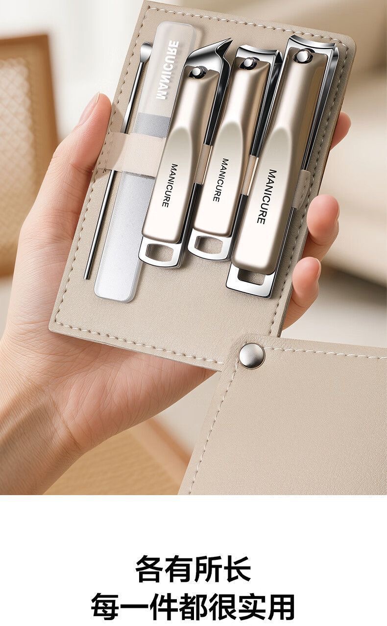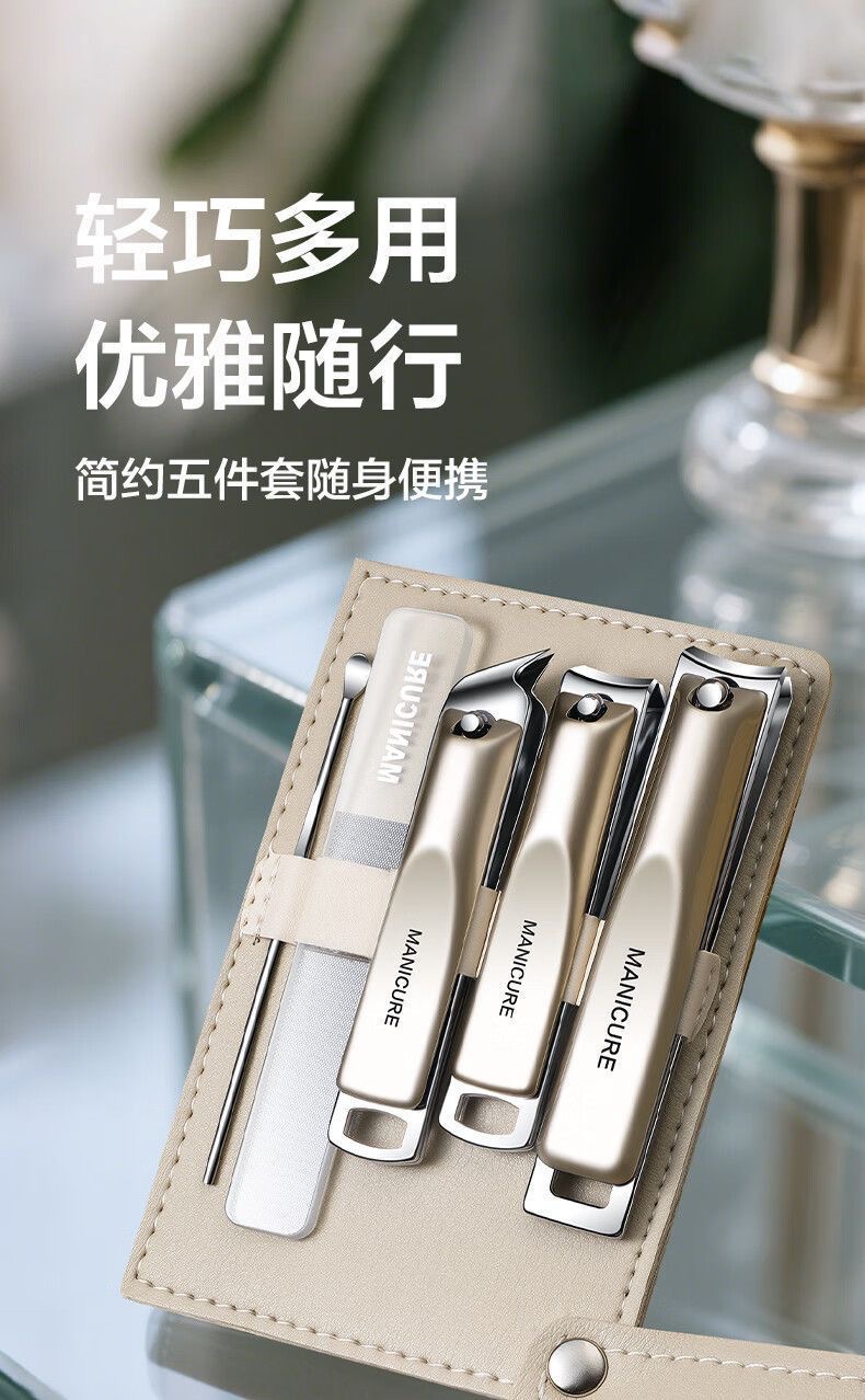 德国不锈钢指甲刀防飞溅指甲剪套装五件套家用指甲钳斜口剪工具