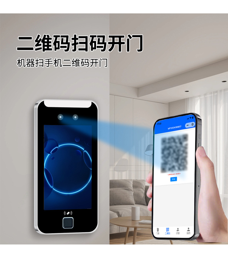 5.5寸动态人脸指纹识别金属门禁系统一体机防水刷脸电控电磁锁