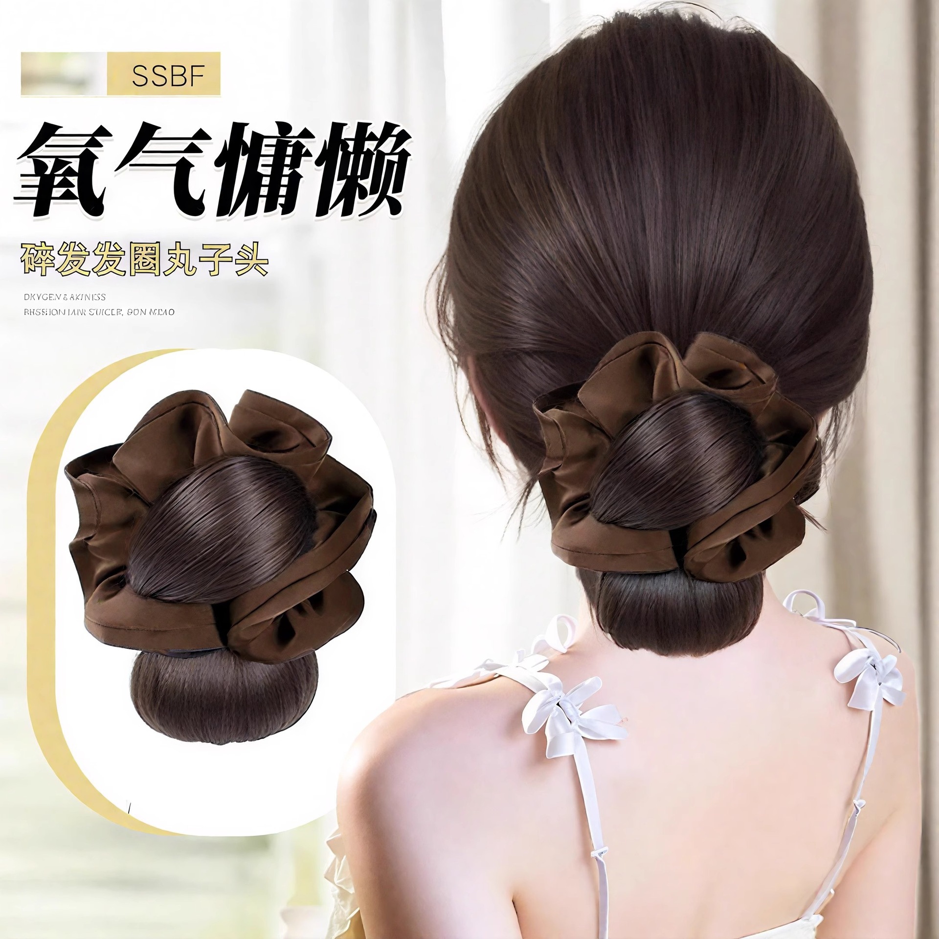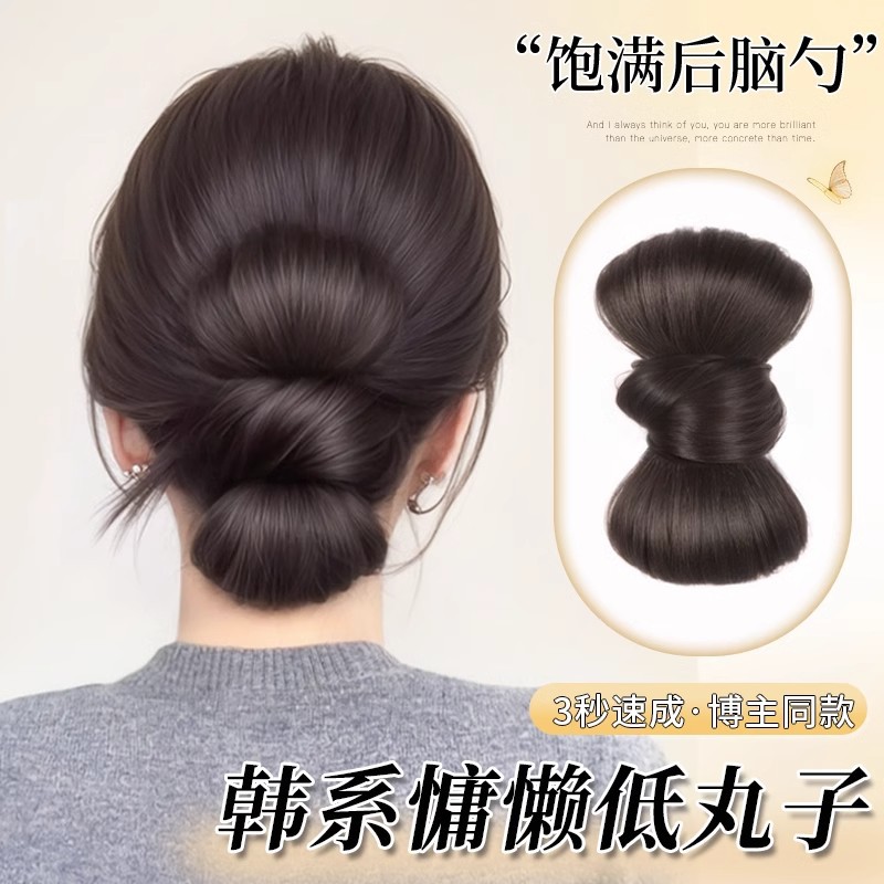 鸡毛低丸子头假发抓夹式花苞头明星同款盘发发圈发饰后脑勺假发包