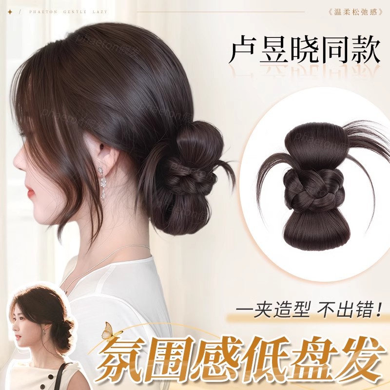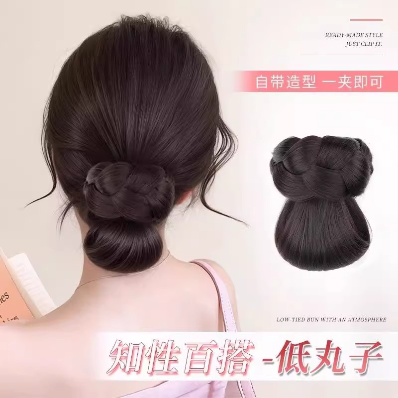 明星同款丸子头假发女仿真发抓夹气质慵懒低扎古风麻花编发花苞头