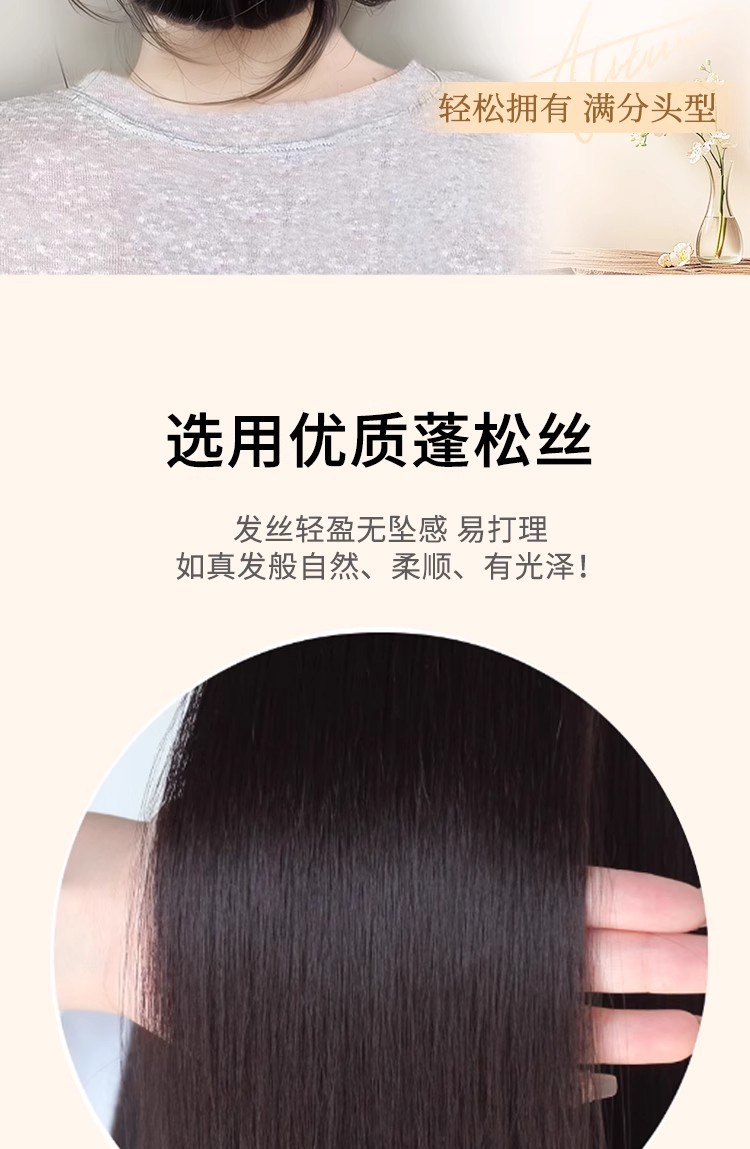 女性用ボールヘッドウィッグ、低結び雰囲気、つぼみヘアアーティファクト、ふわふわ後頭部ナチュラルウィッグヘアバッグ