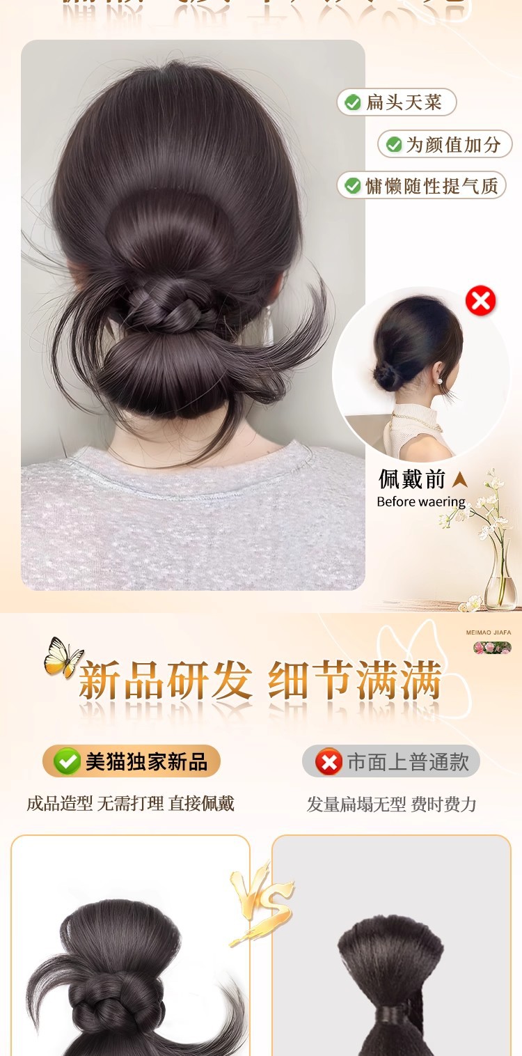 假发抓夹丸子头假发女仿真发抓夹气质慵懒低扎古风麻花编发花苞头