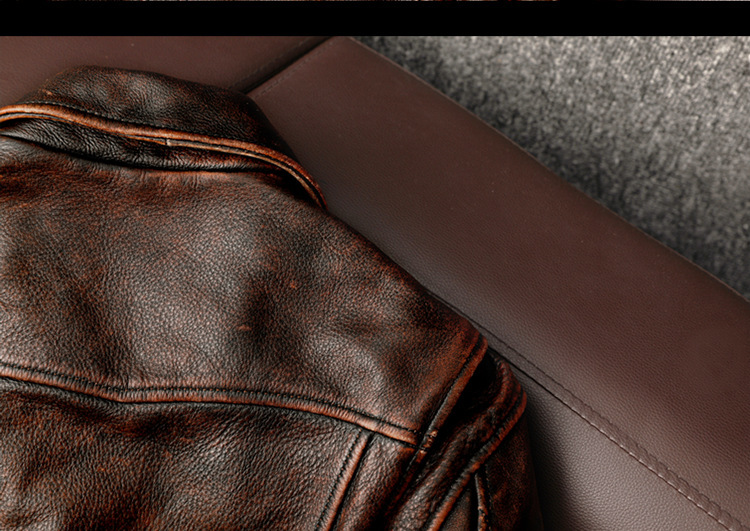 2025跨境美式复古 纯头层牛皮真皮皮衣男 机车短款石磨做旧外套潮