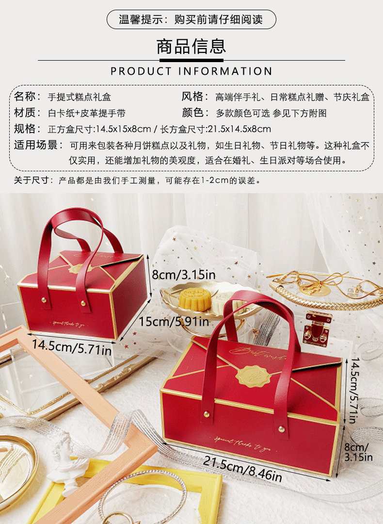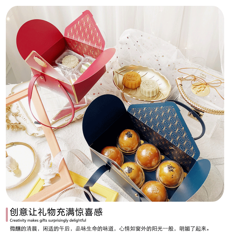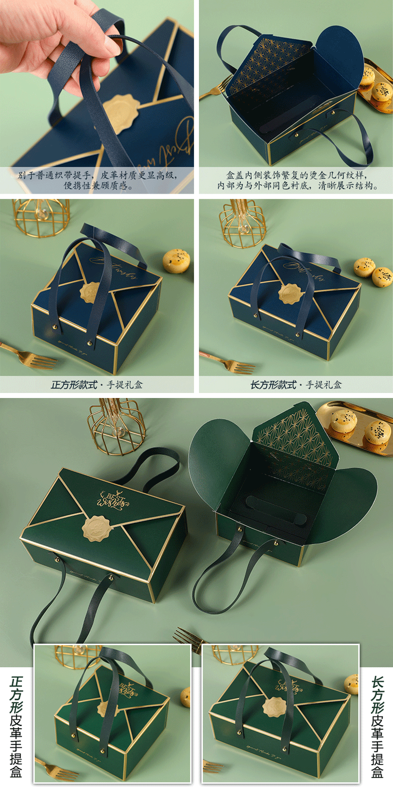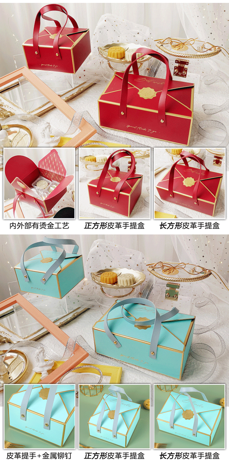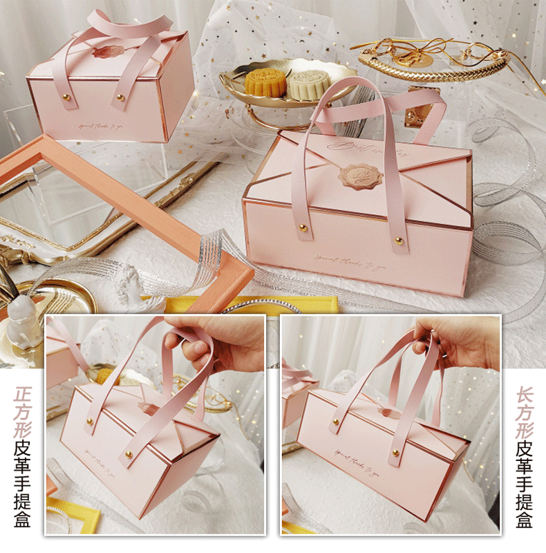 手提式糕点礼盒皮革月饼盒节日送礼礼品盒包装礼盒蛋黄酥手提盒
