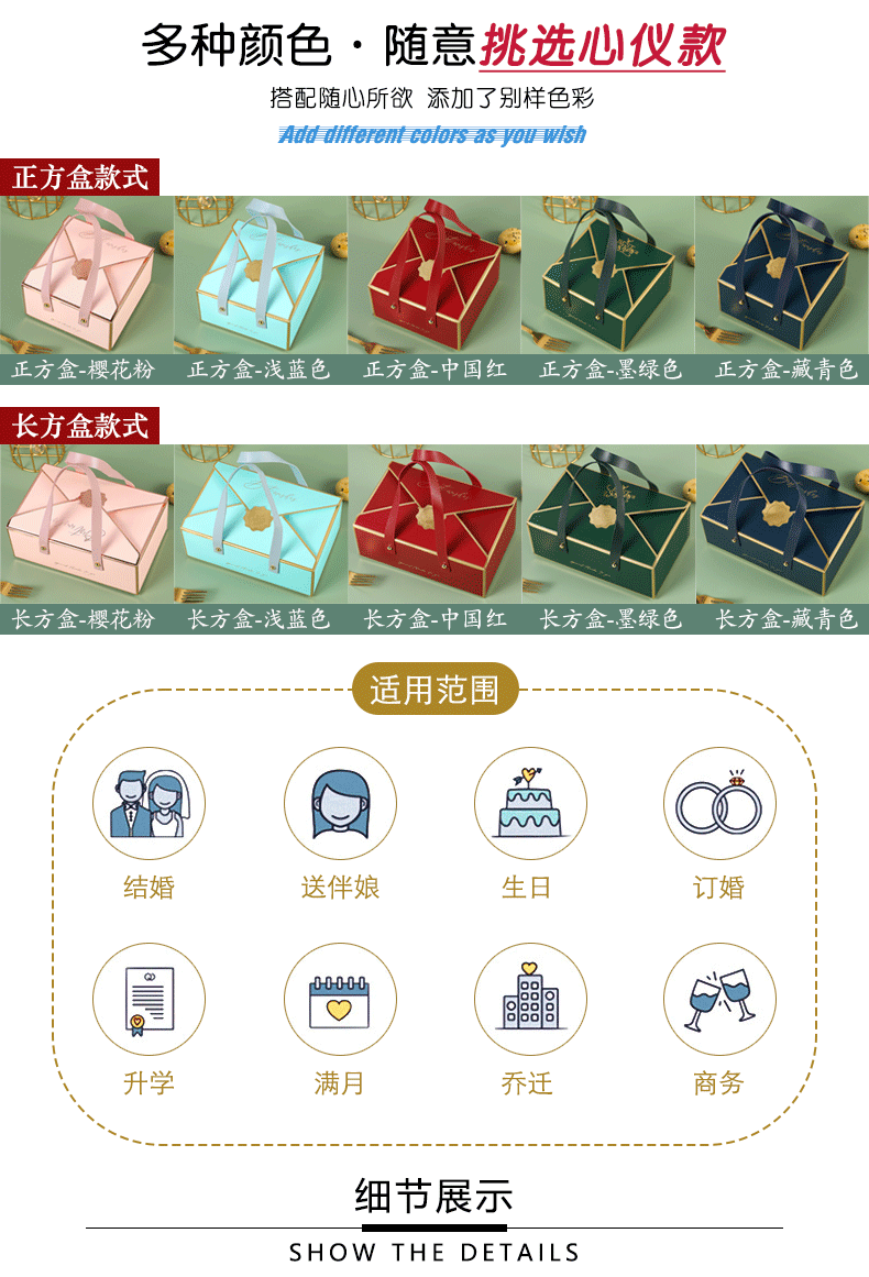 颜色 正方盒-墨绿色,正方盒-浅蓝色,长方盒-藏青色,长方盒-墨绿色,正方盒-藏青色,长方盒-樱花粉,长方盒-中国红,正方盒-樱花粉,正方盒-中国红,长方盒-浅蓝色