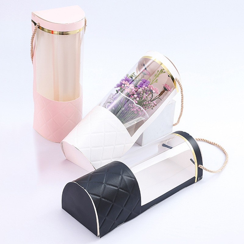 情人教师节真香花桶鲜花手提盒开窗半圆包装盒菱形纹手提礼品花桶