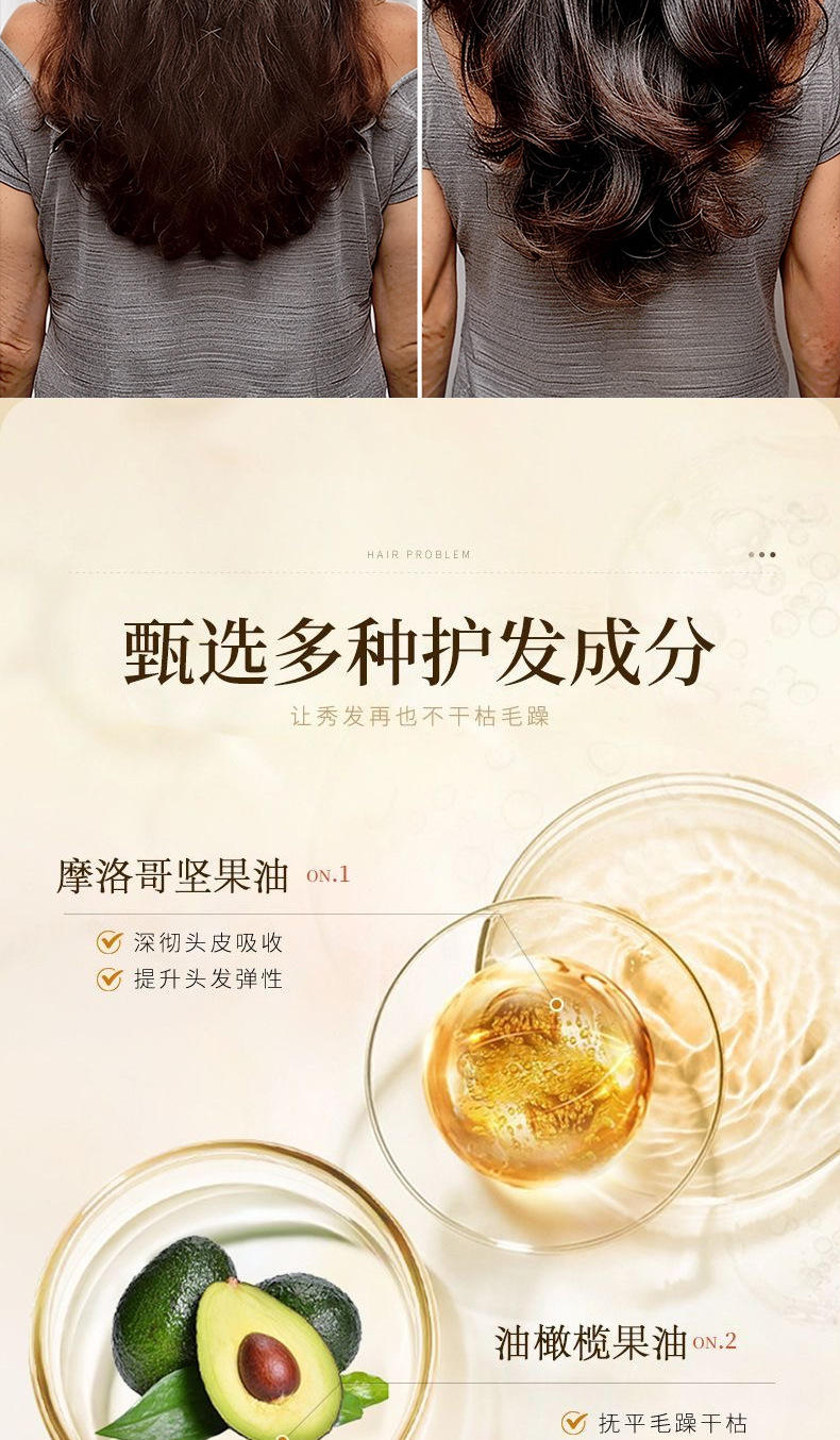 功效 染后护色,强韧发质,垂坠顺滑,脆弱开叉护理,染烫受损护理,改善毛躁