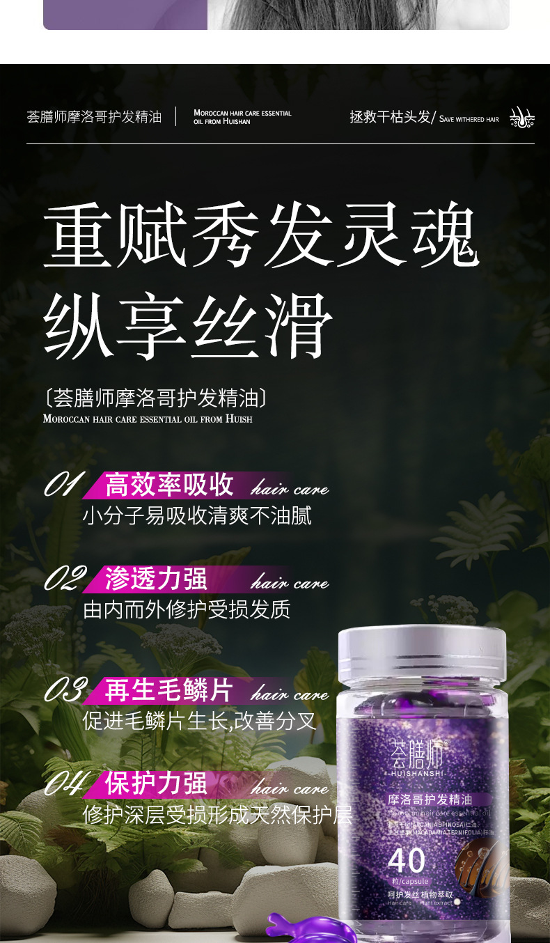 摩洛哥免洗护发精油软胶囊修护滋养改善毛躁头发营养厂家现货批发