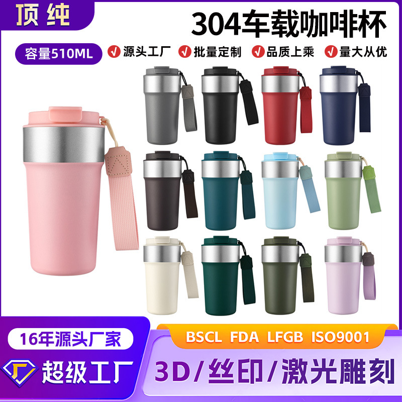 新型車載ステンレスコーヒーカップ自動車カップ二重真空屋外カバーカップビジネス保温カップ卸売り
