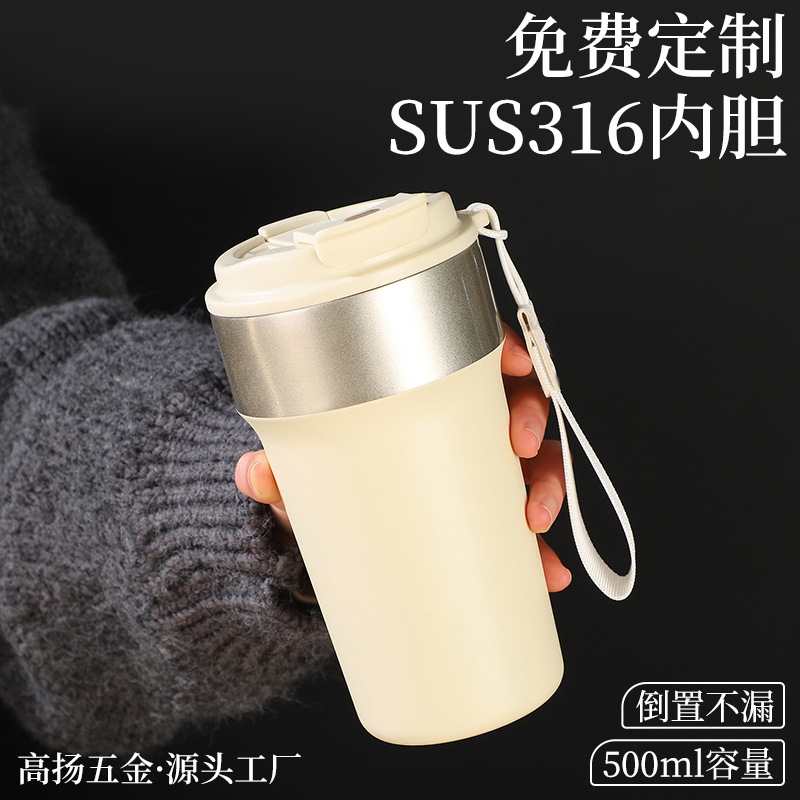 高颜值咖啡杯定制316不锈钢双饮口保温杯便携车载户外随行礼品杯