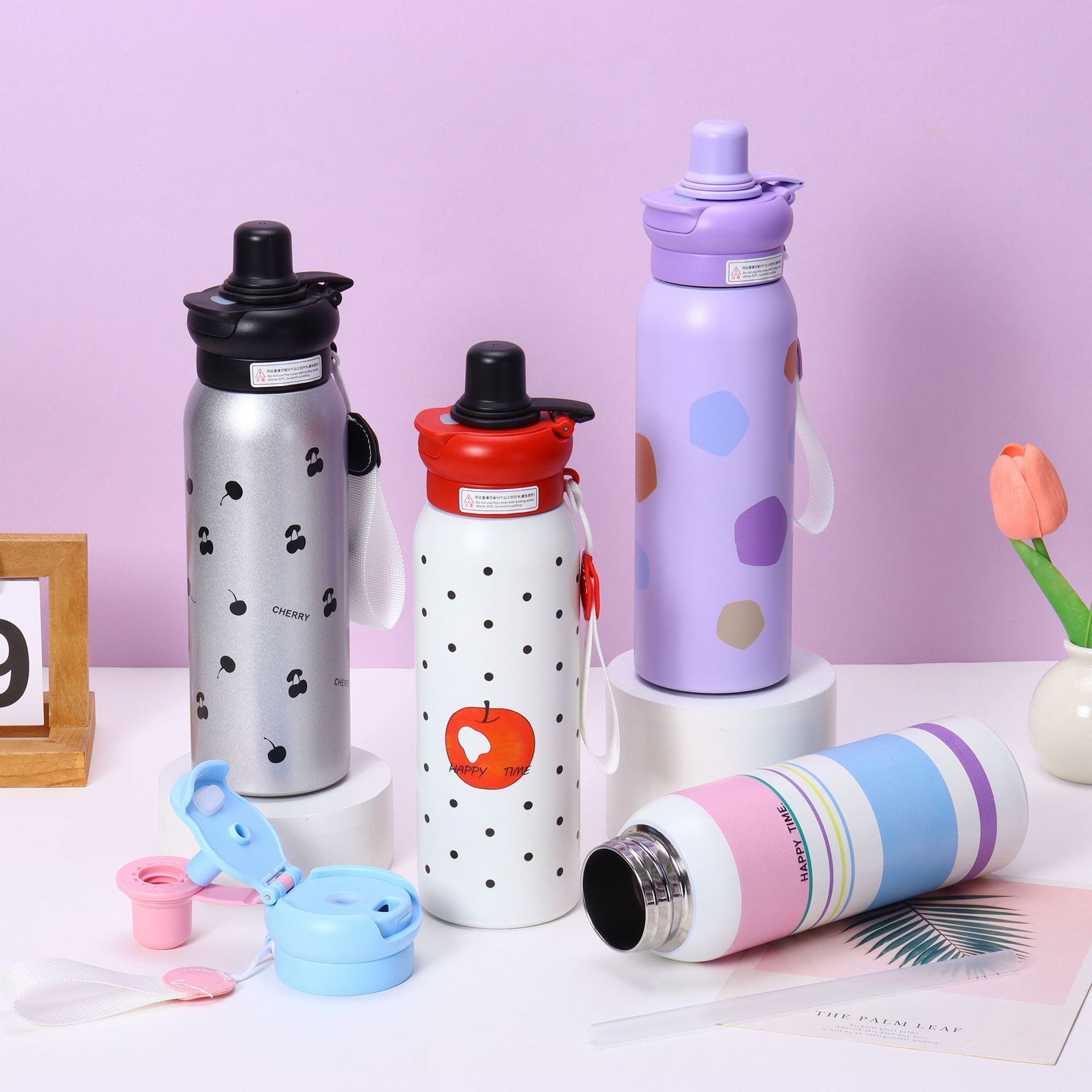 高颜值真空304不锈钢保温杯户外便携提绳运动水壶双饮吸管水杯