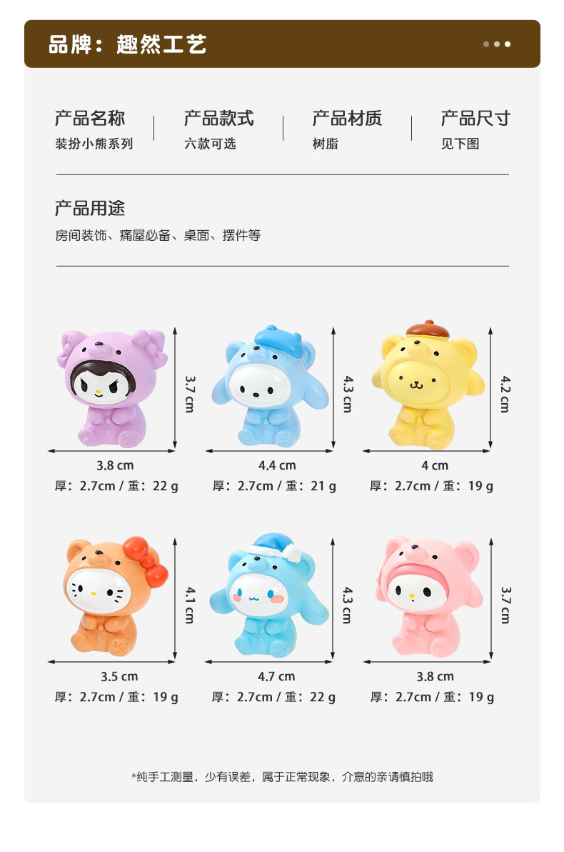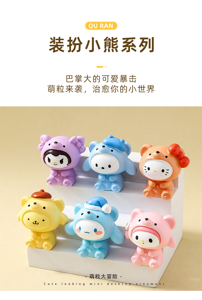 可爱小熊三丽鸥萌粒公仔直播对对碰盲袋桌面小摆件树脂工艺品批发