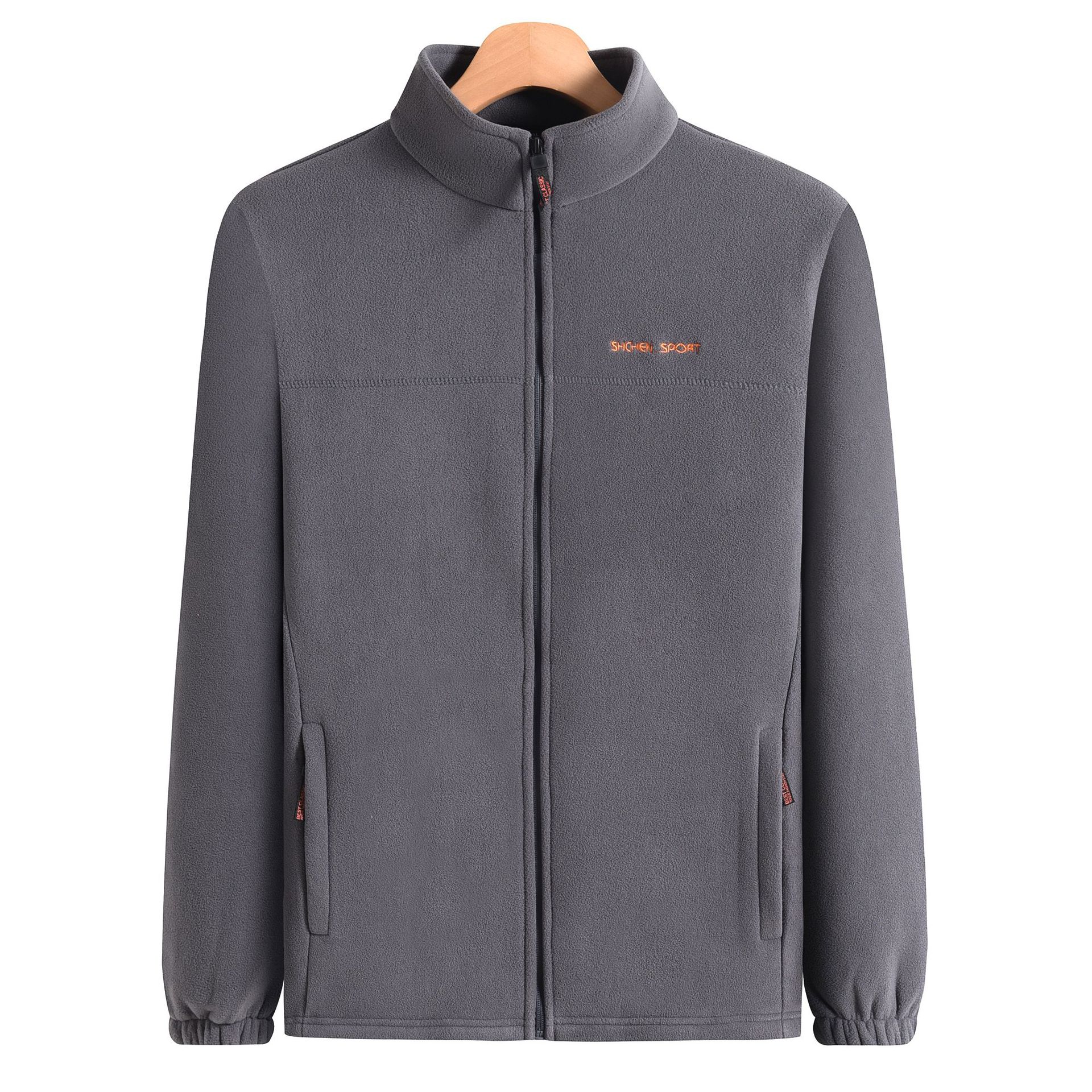 フリース男立襟ジッパーカーディガン上着春秋タイプ男服保温フリース大サイズ上着父コート