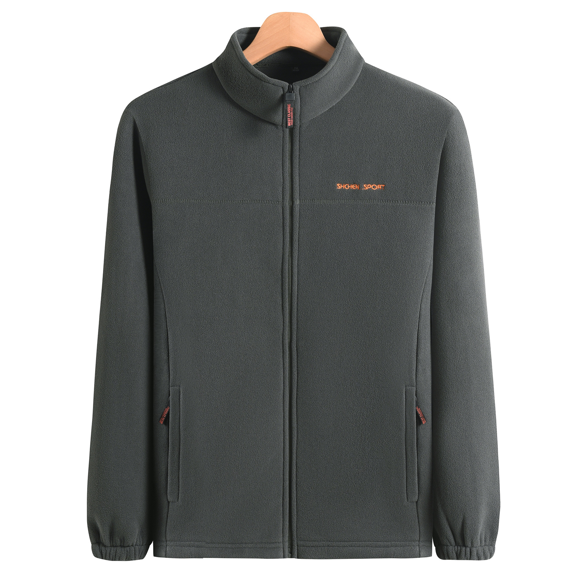 新款摇粒绒男立领拉链开衫外套秋冬季男装加厚保暖摇粒绒纯色卫衣