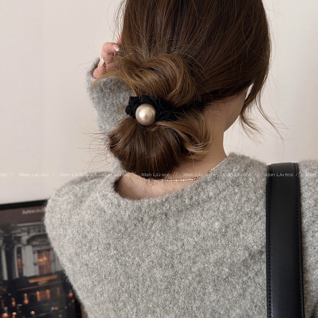 2025年新款复古珍珠山茶花发圈不伤发马尾头绳扎头发皮筋女发绳