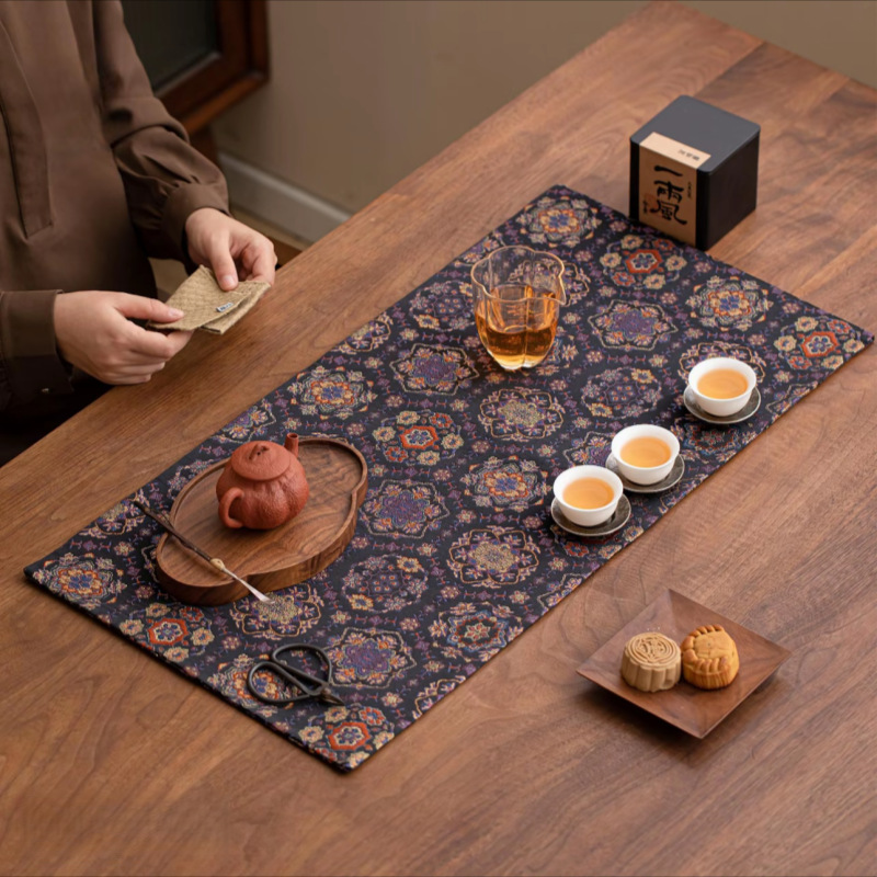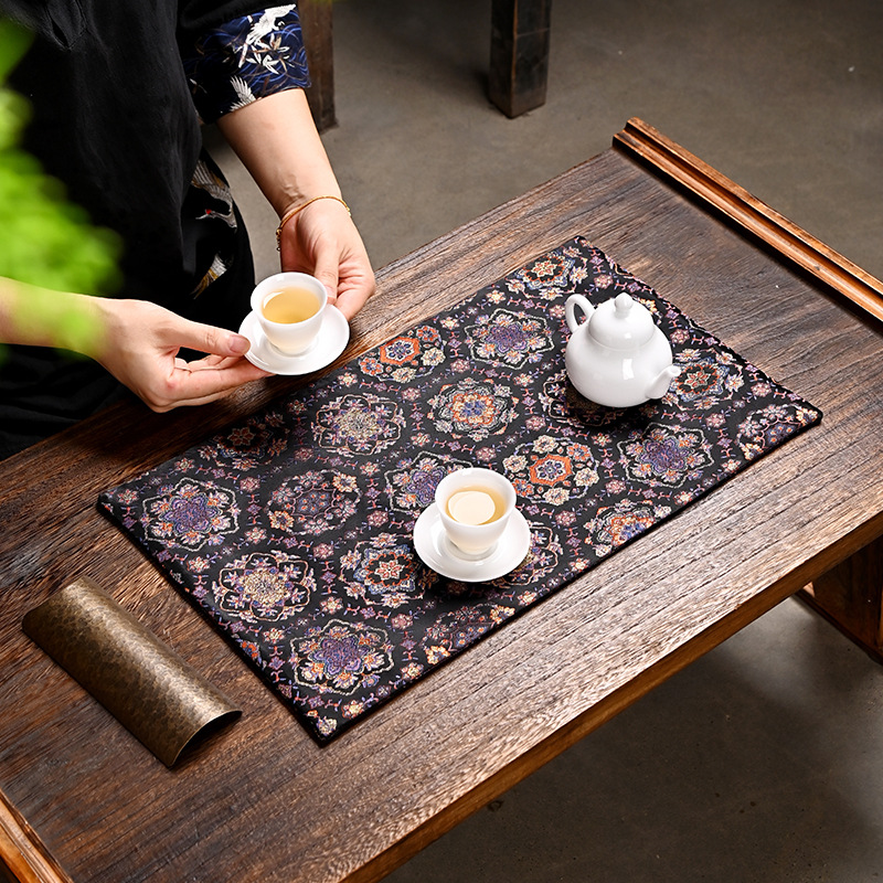 雲錦両面錦織布マット茶道ドライバブルマット中国風ティーマットレトロ禅茶マット