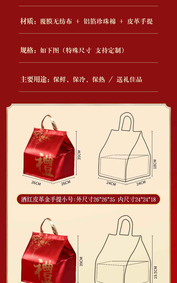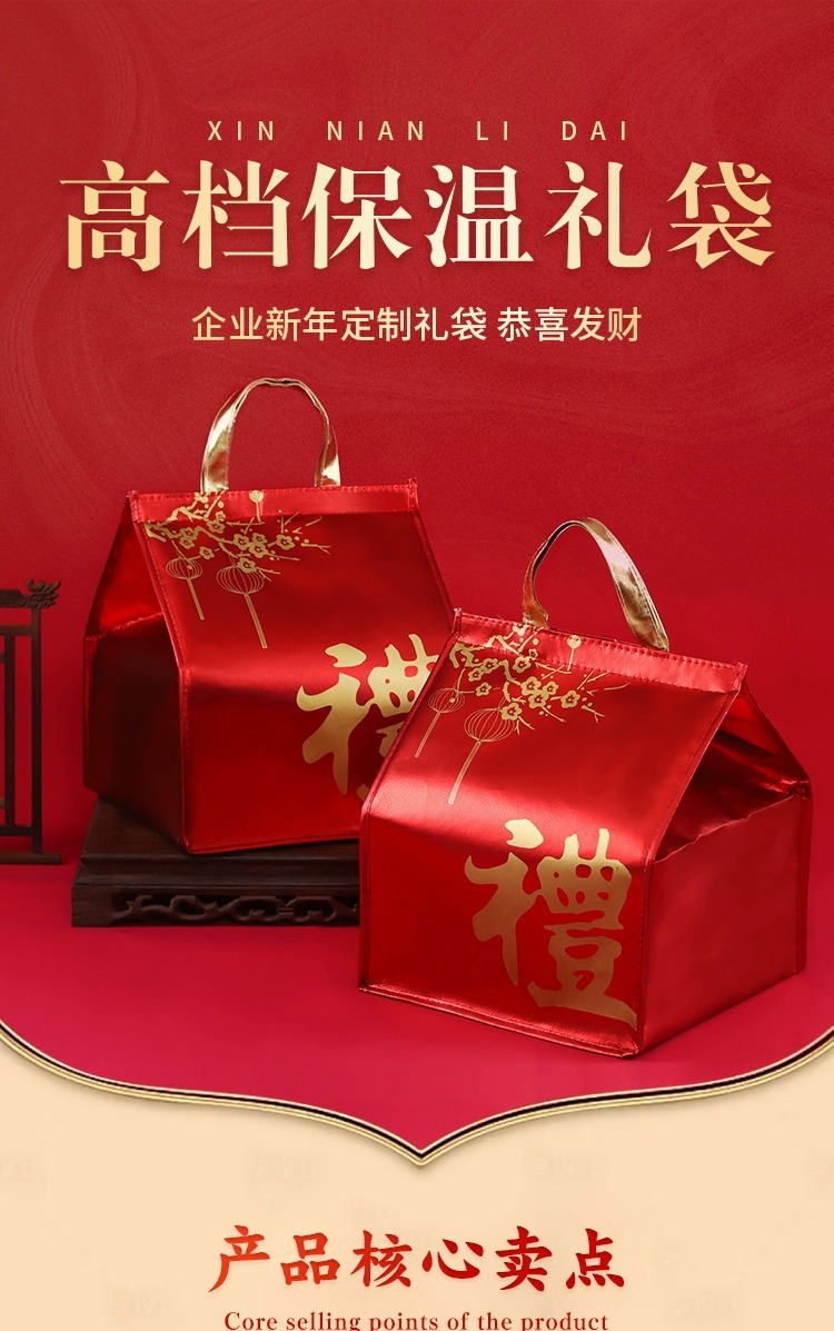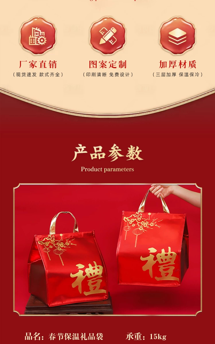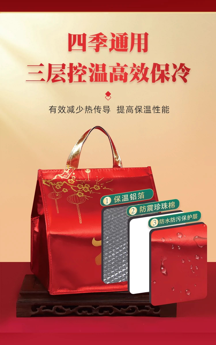 春节礼品保温袋定制年货福袋生鲜海参佛跳墙礼品袋大容量保温袋子
