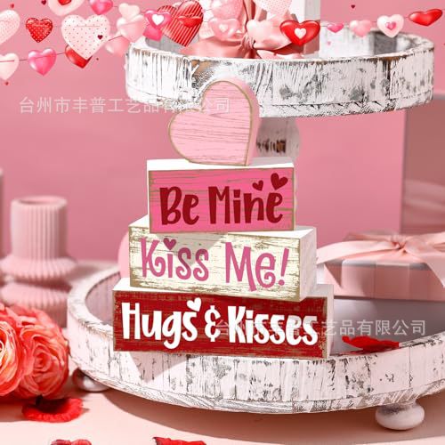 情人节餐桌装饰标志分层托盘木质独立式情人节装饰品婚礼礼物