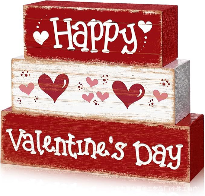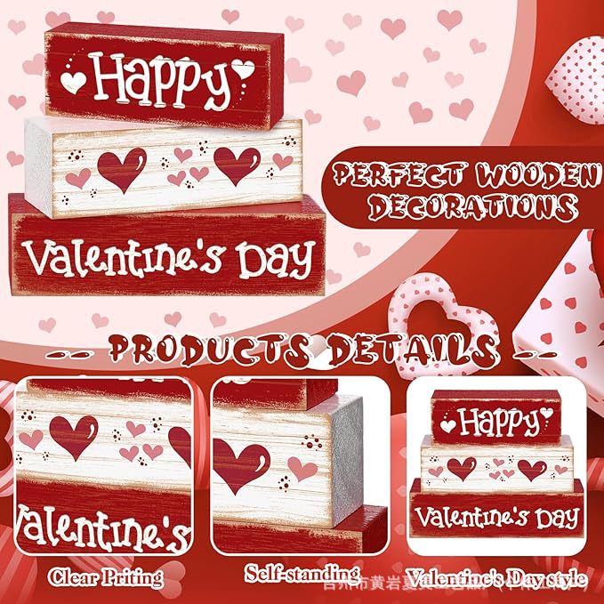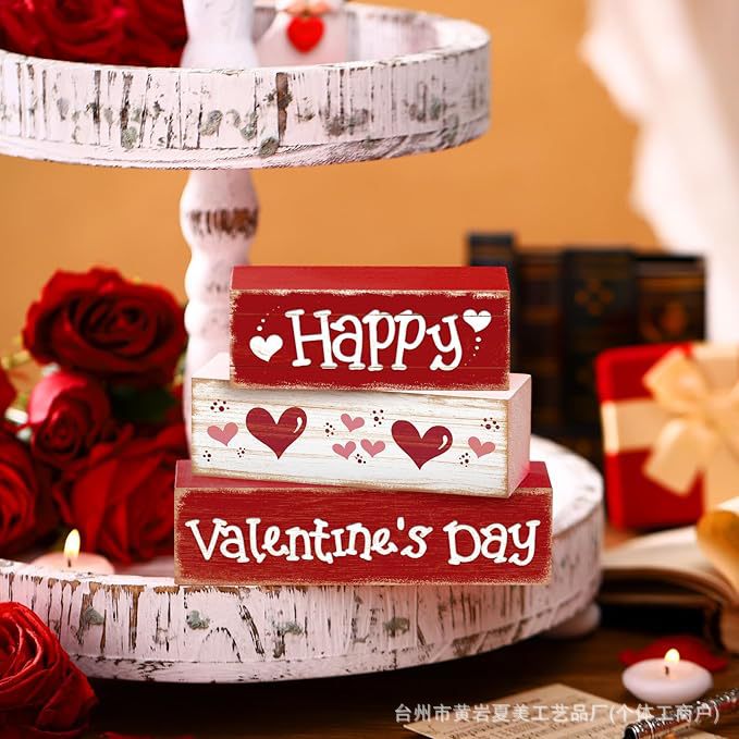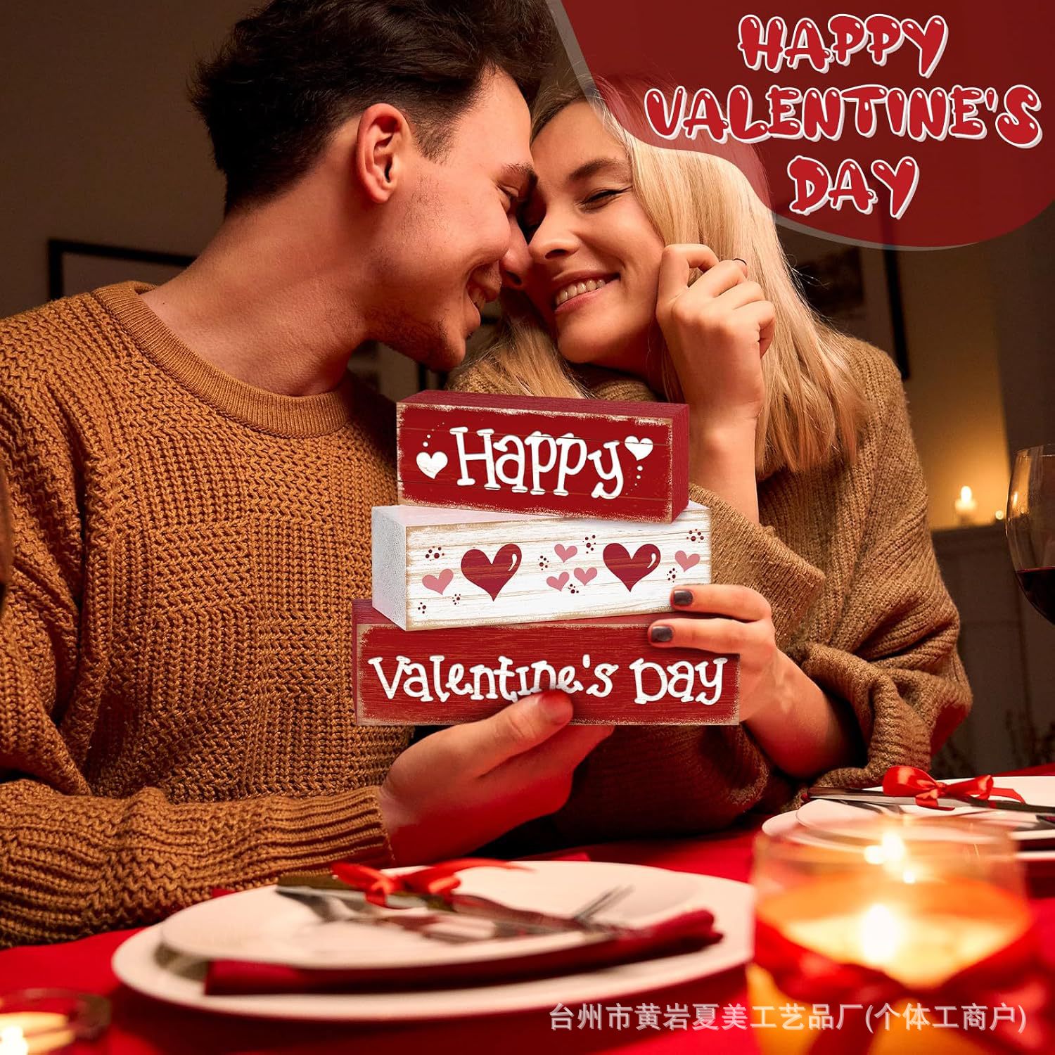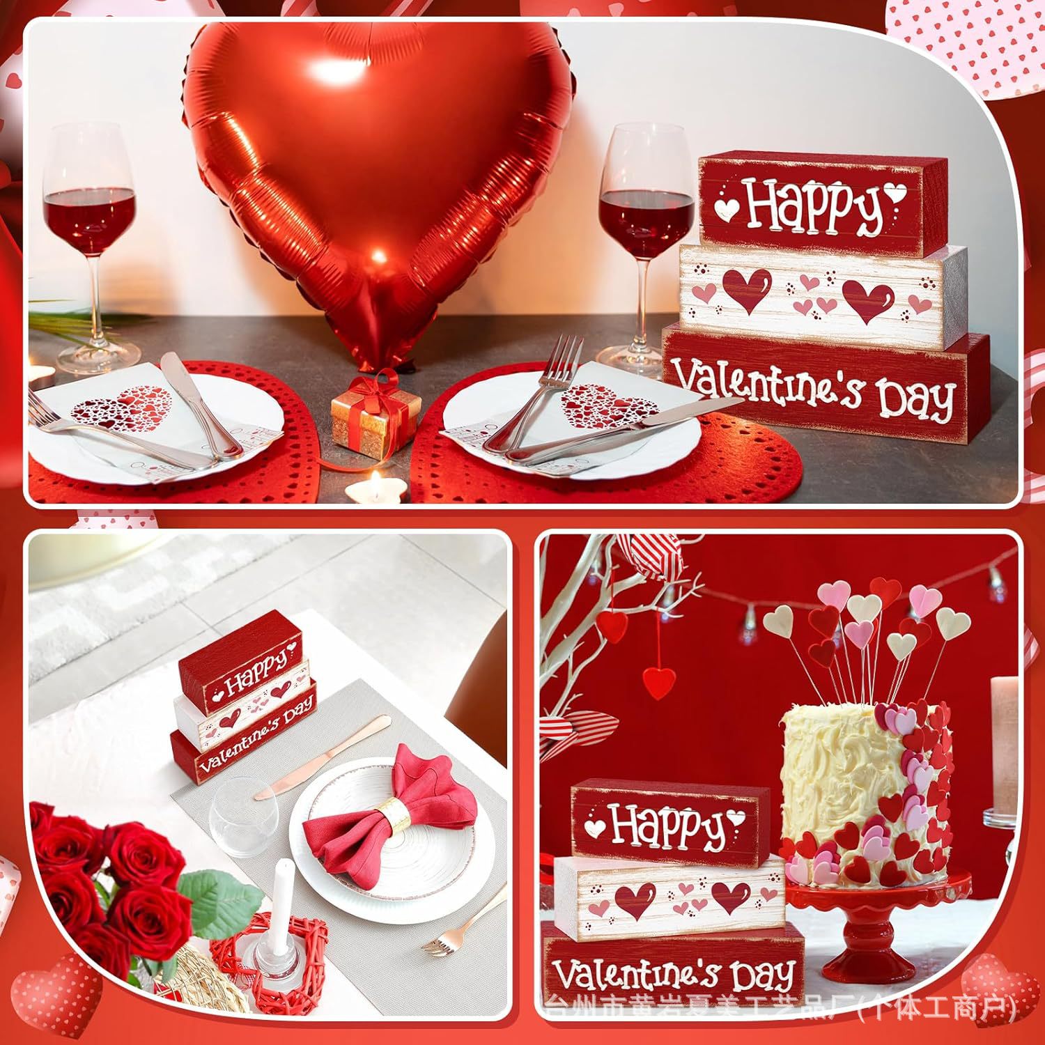亚马逊热卖木质家居摆台情人节派对装饰木块布置餐桌托盘分层摆件