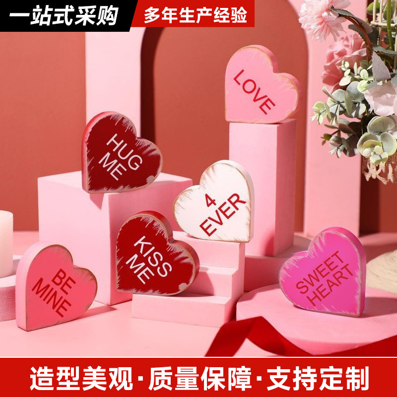 新商品創意loveバレンタインデー置物デスクトップ木製diy工芸品バレンタインデー置物メーカー卸売り