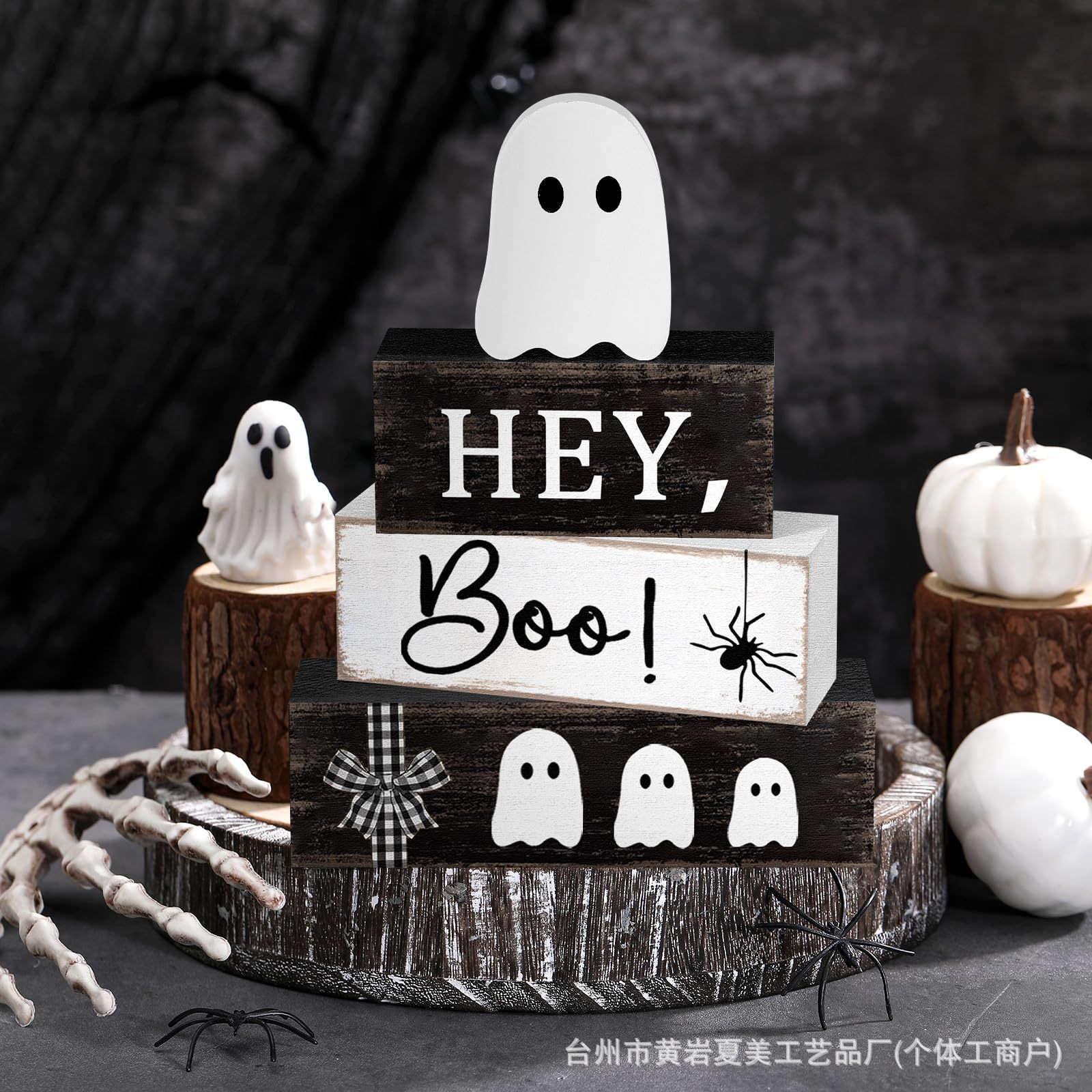 ハロウィン木製オーナメントとゴーストティアードトレイデコレーションミニファームハウスカントリートレイオーナメント4個セット