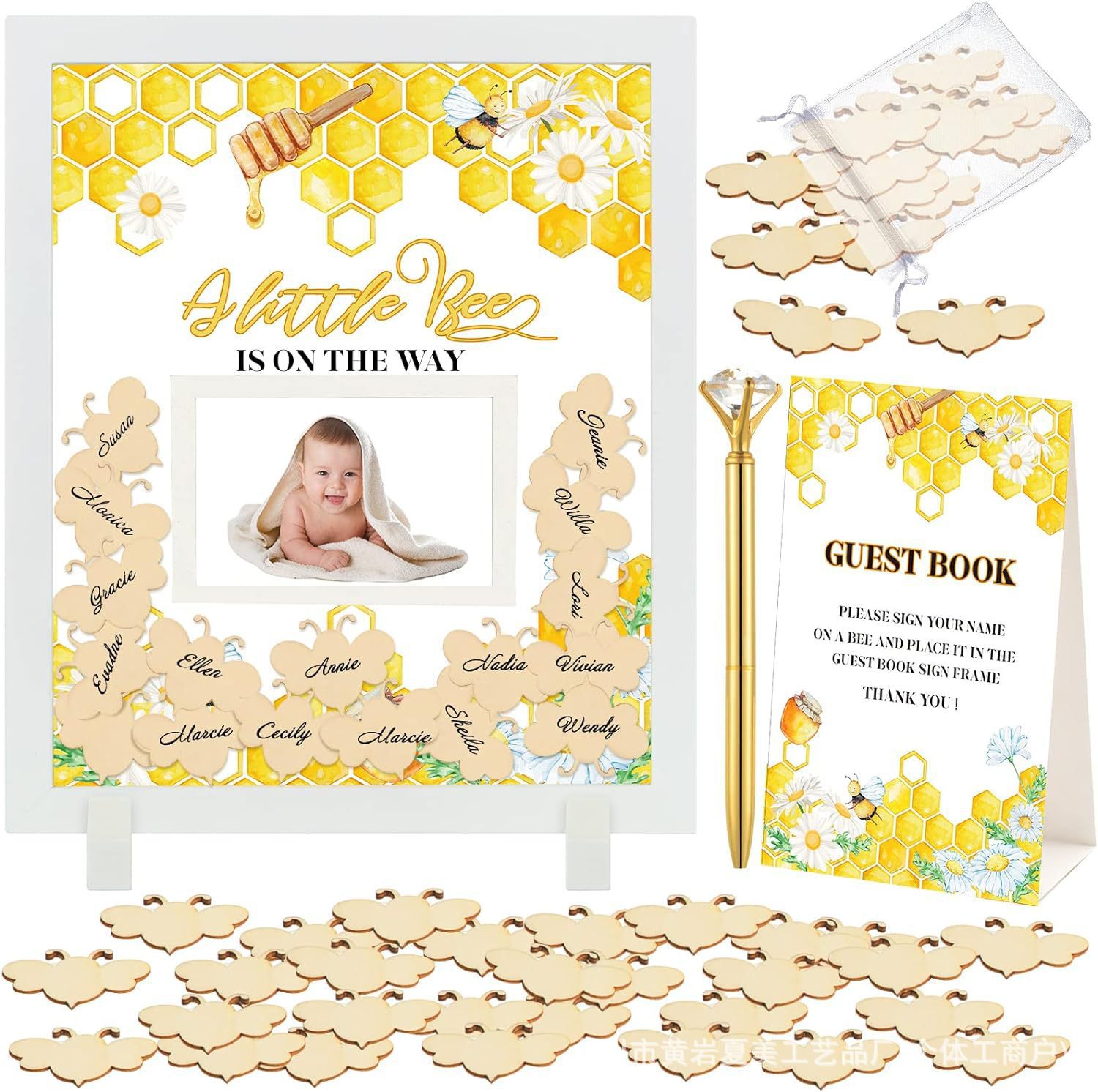 蜂をテーマにしたゲストブック木製ゲストブック誕生日パーティー赤ちゃん洗礼記念赤ちゃんの誕生日サインインテーブル