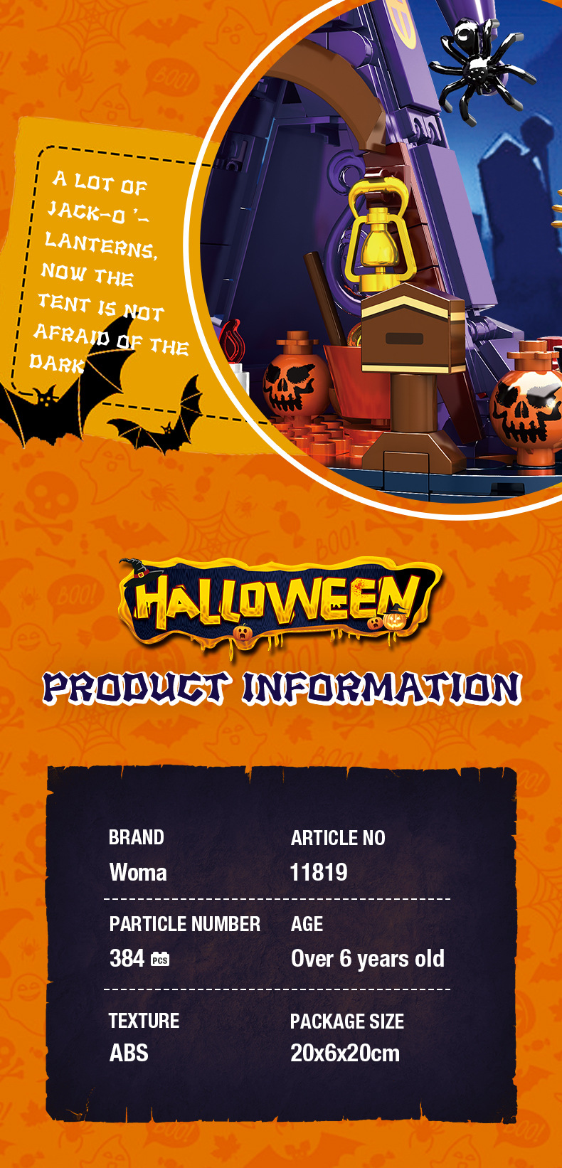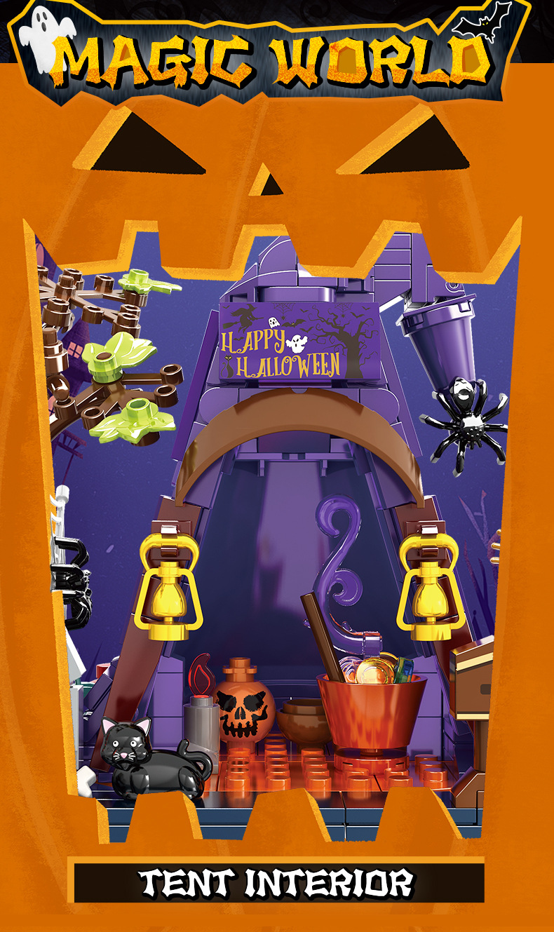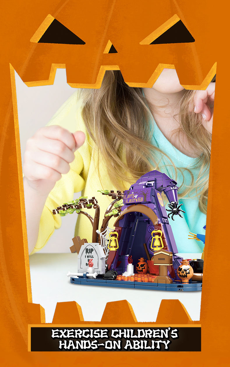 沃马积木万圣节帐篷鬼屋小颗粒拼装模型南瓜屋玩具礼物跨境专供