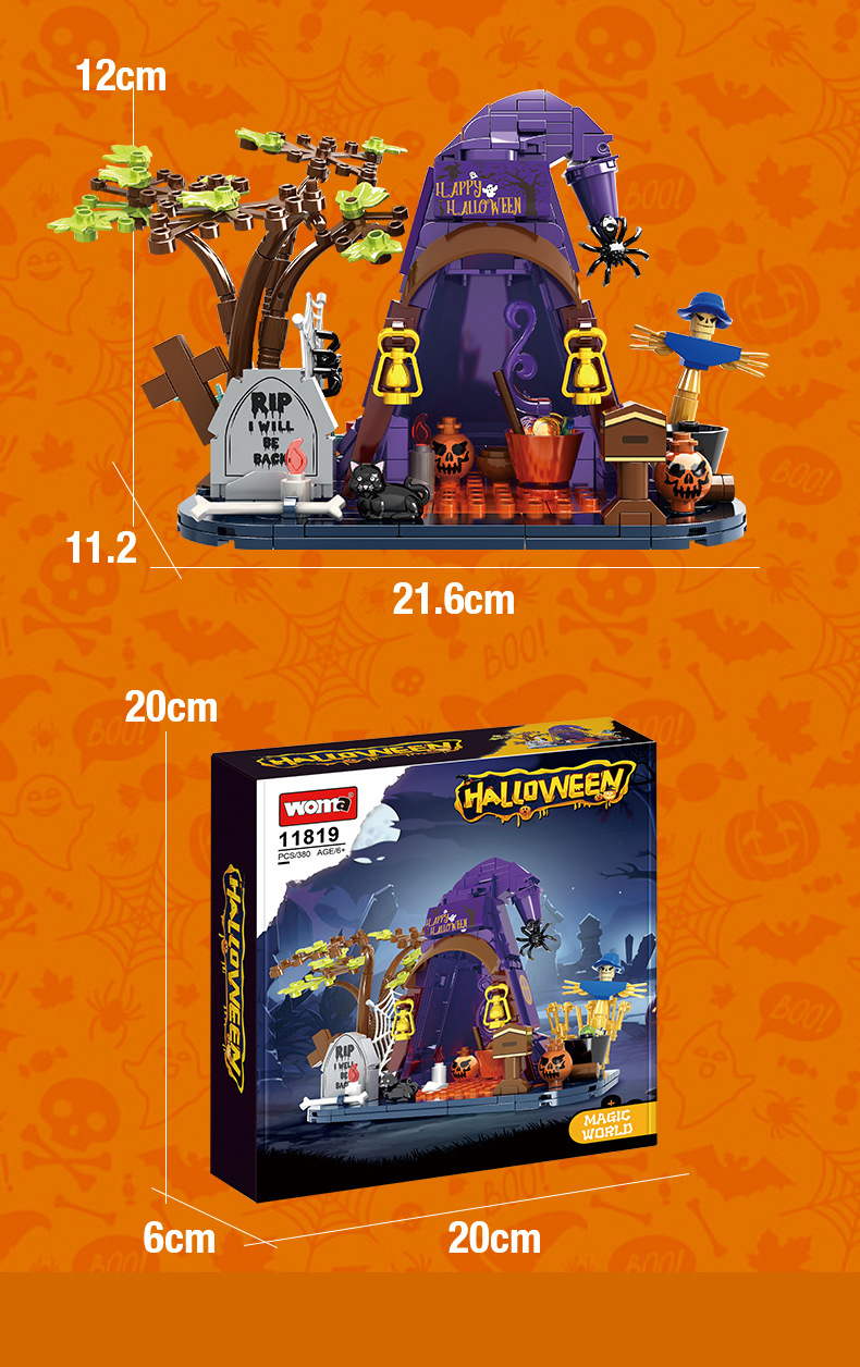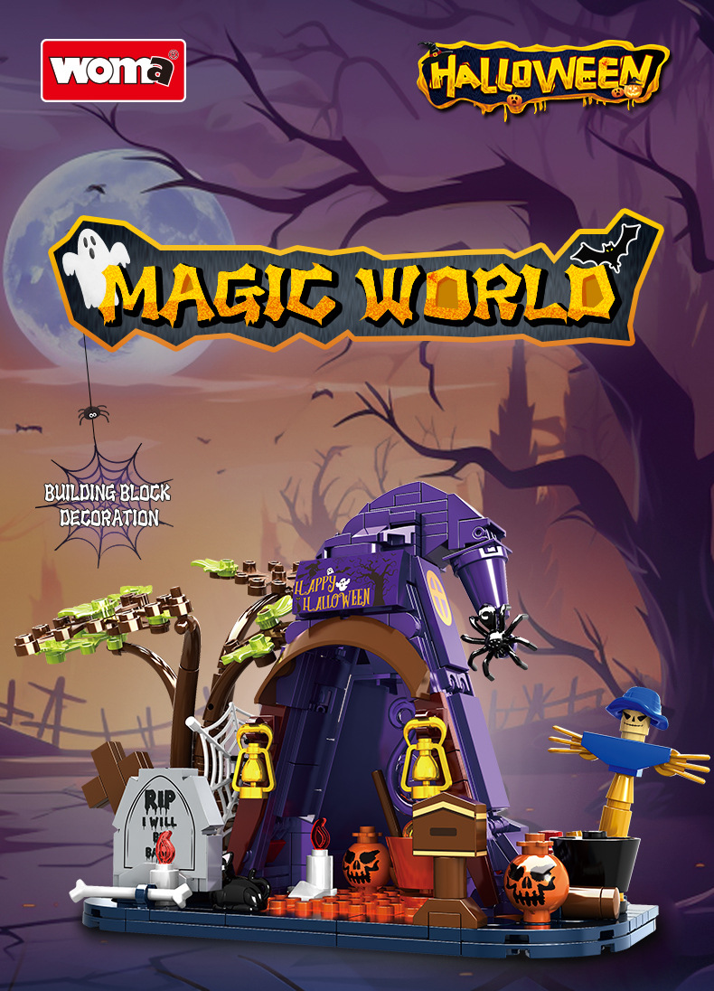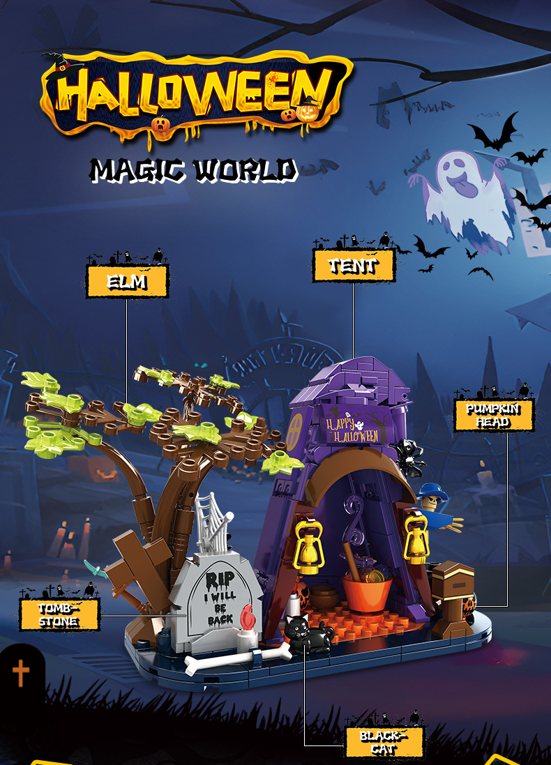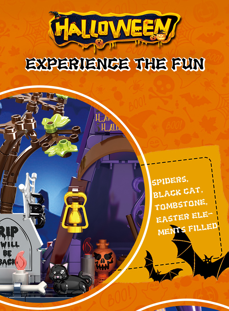 沃马积木万圣节帐篷鬼屋小颗粒拼装模型南瓜屋玩具礼物跨境专供