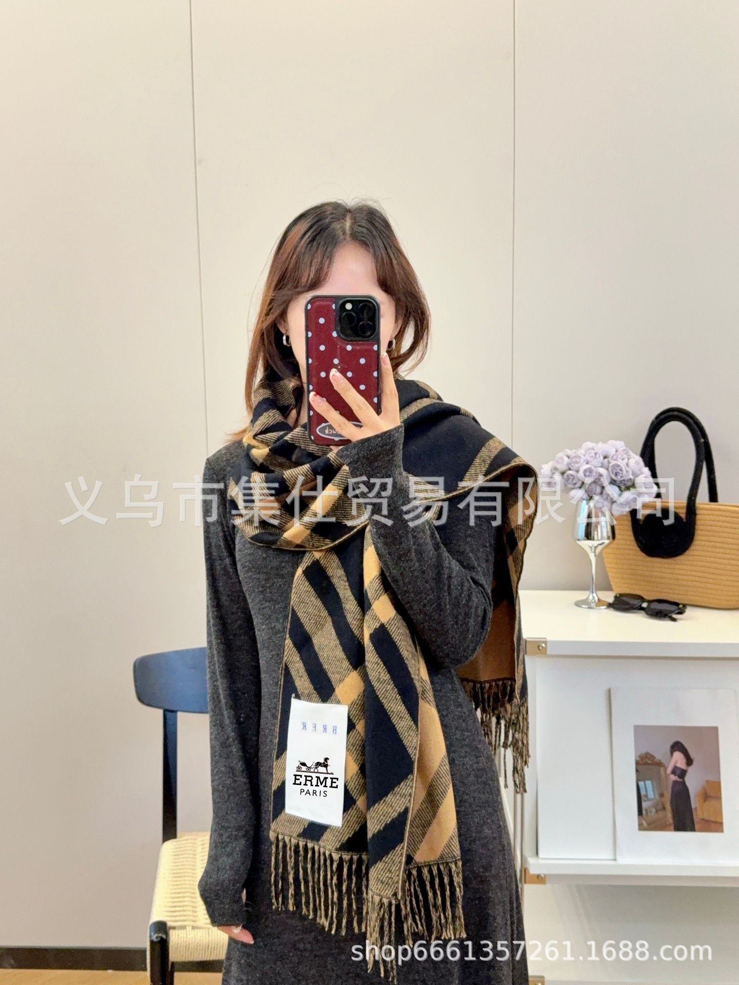 驴家秋冬口袋款流苏针织围巾情侣时尚披肩节日礼物保暖围巾围脖