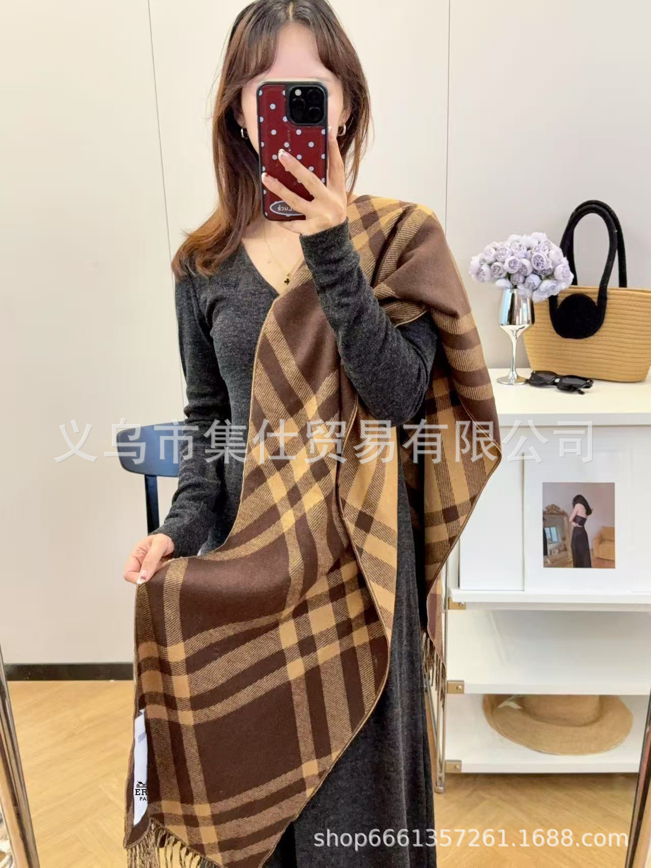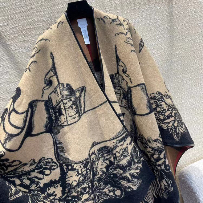 网红爆冬款韩版经典战马图双面保暖羊绒外搭多用披风披肩斗篷