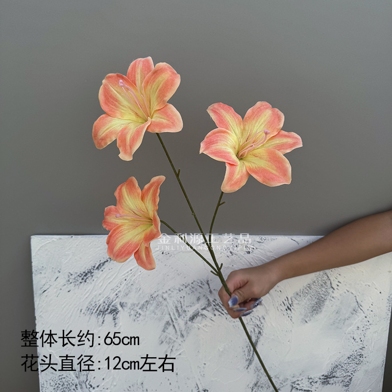 源头工厂3D打印三头金百合婚庆花婚礼堂插花布置装饰跨境外贸绢花
