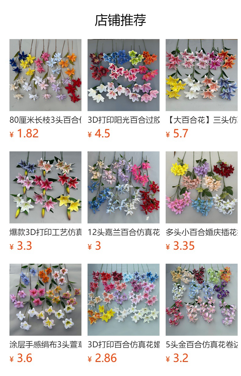 3D打印百合仿真花婚礼布景花艺装饰实惠花材外贸跨境人造假花