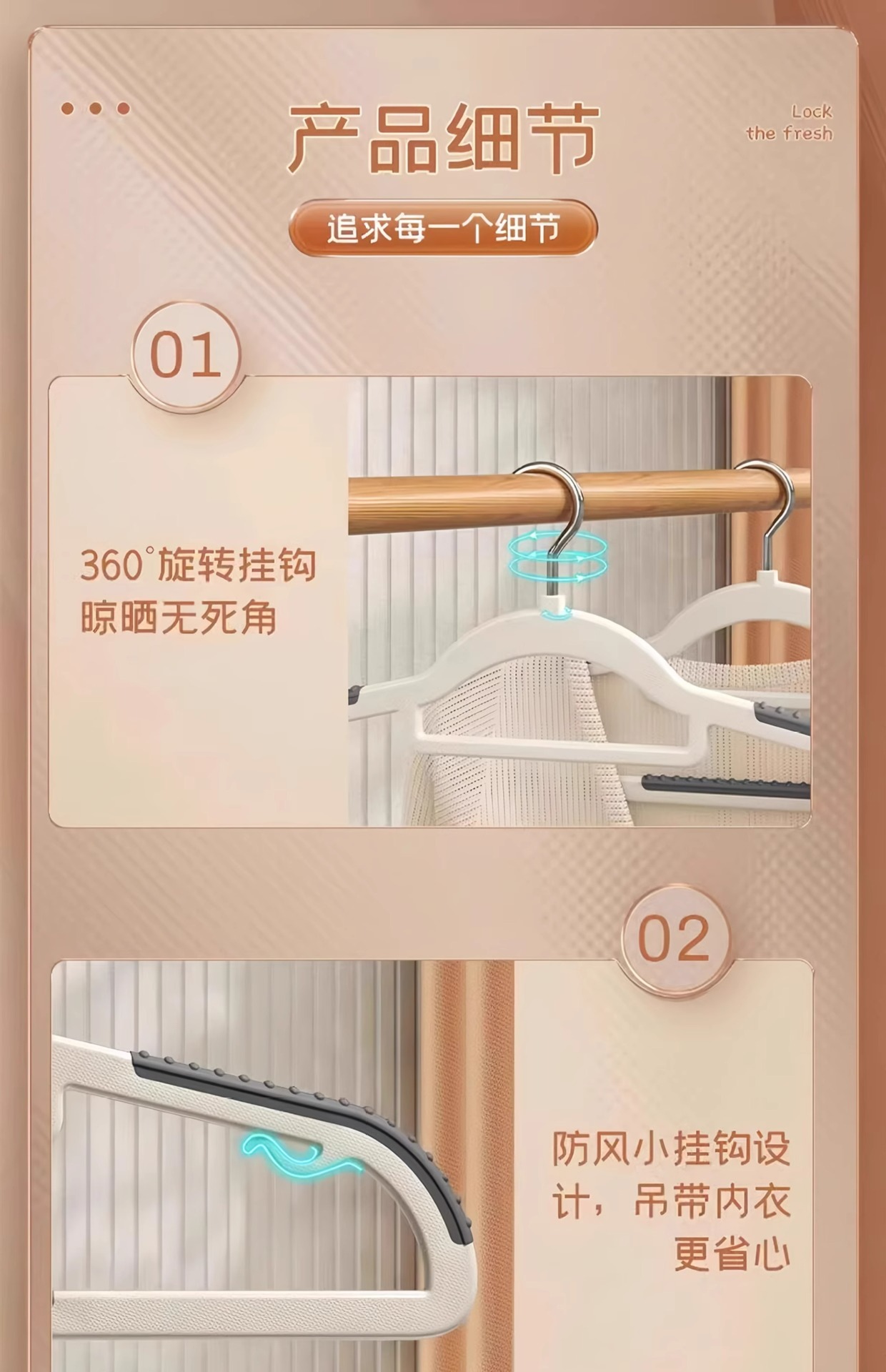 双位护领衣架防滑加粗无痕家用卧室宽肩衣挂可旋转晾晒衣架收纳架