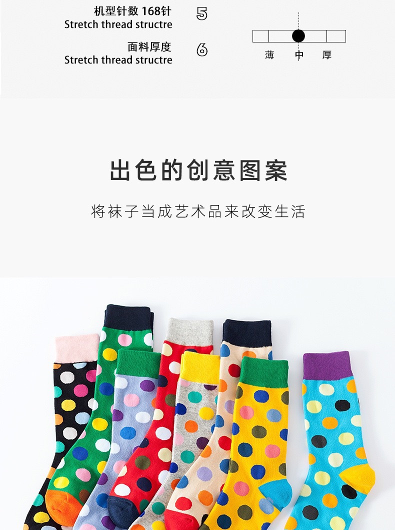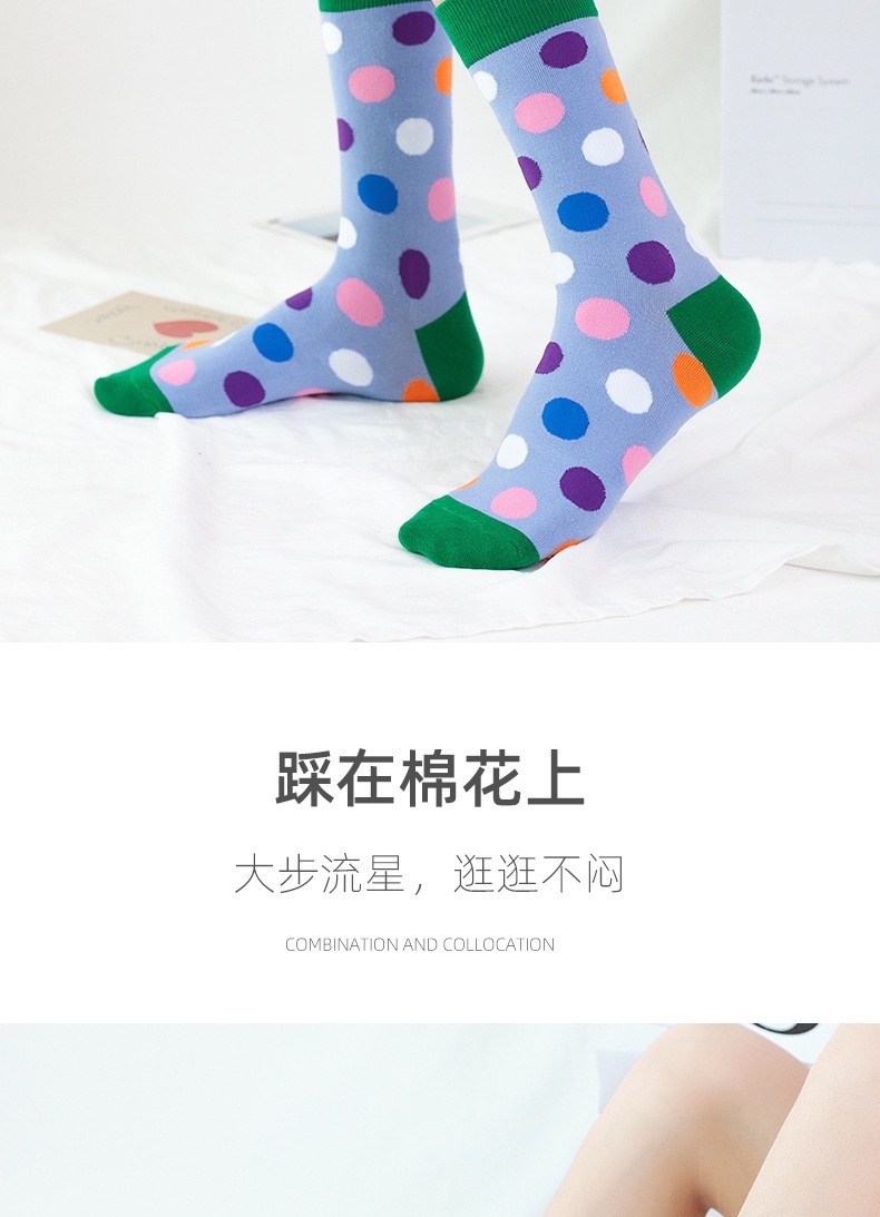 波点中筒袜子潮流女 秋冬欧美ins风长袜情侣闺蜜圆形波点棉袜子