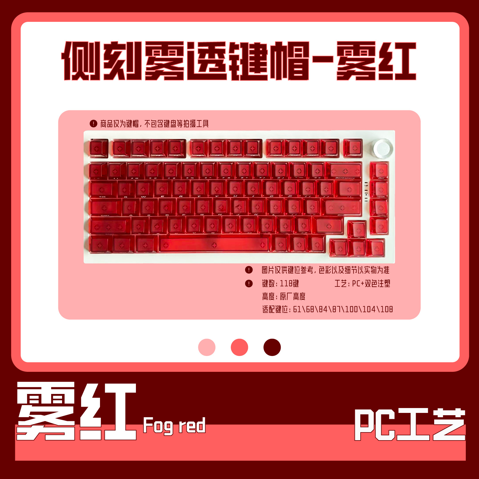 顶面磨砂四面雾透红色侧刻键帽118键小全套双色注塑机械键盘键帽