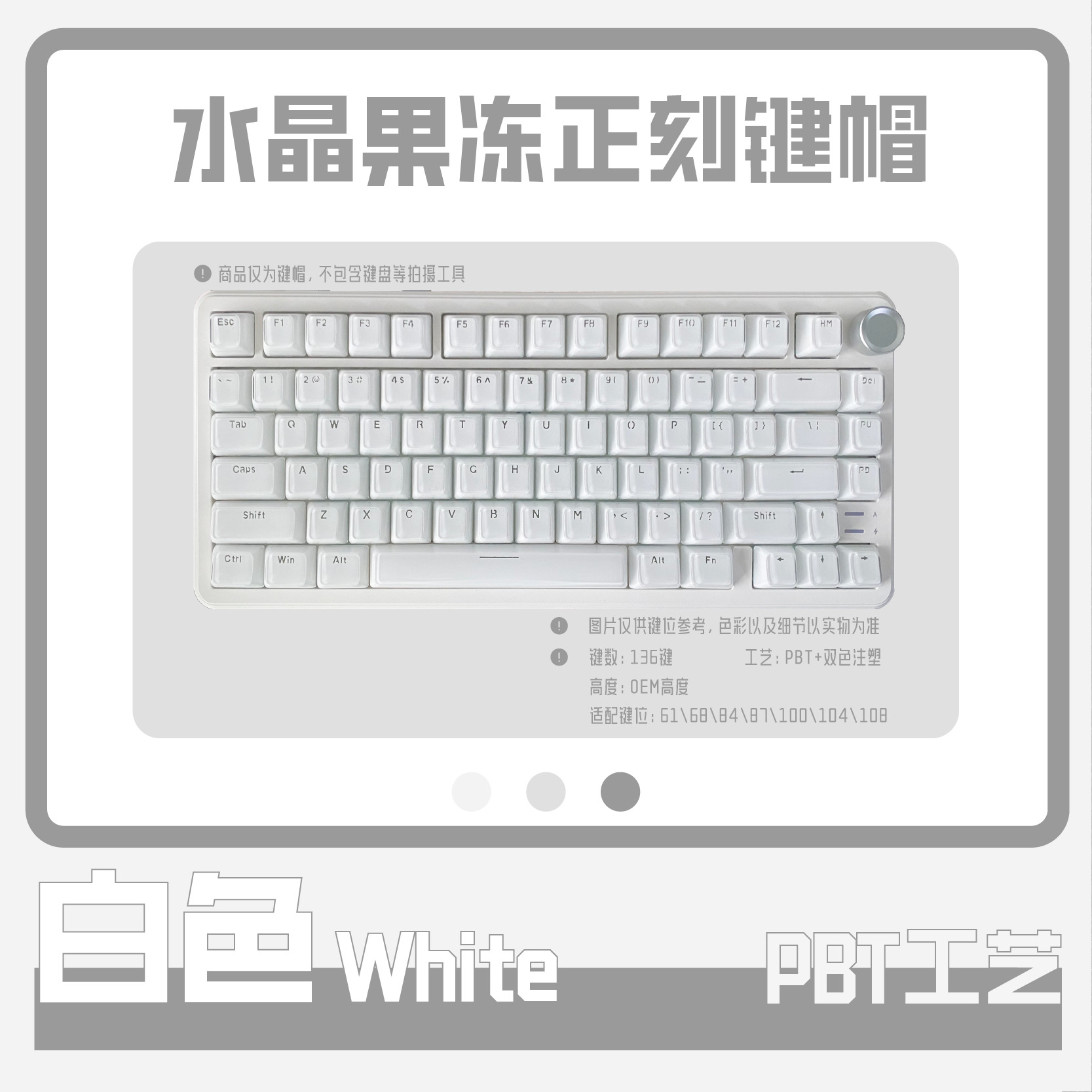 现货白色水晶果冻正刻键帽136键小全套 bpt双色注塑透明水晶键帽