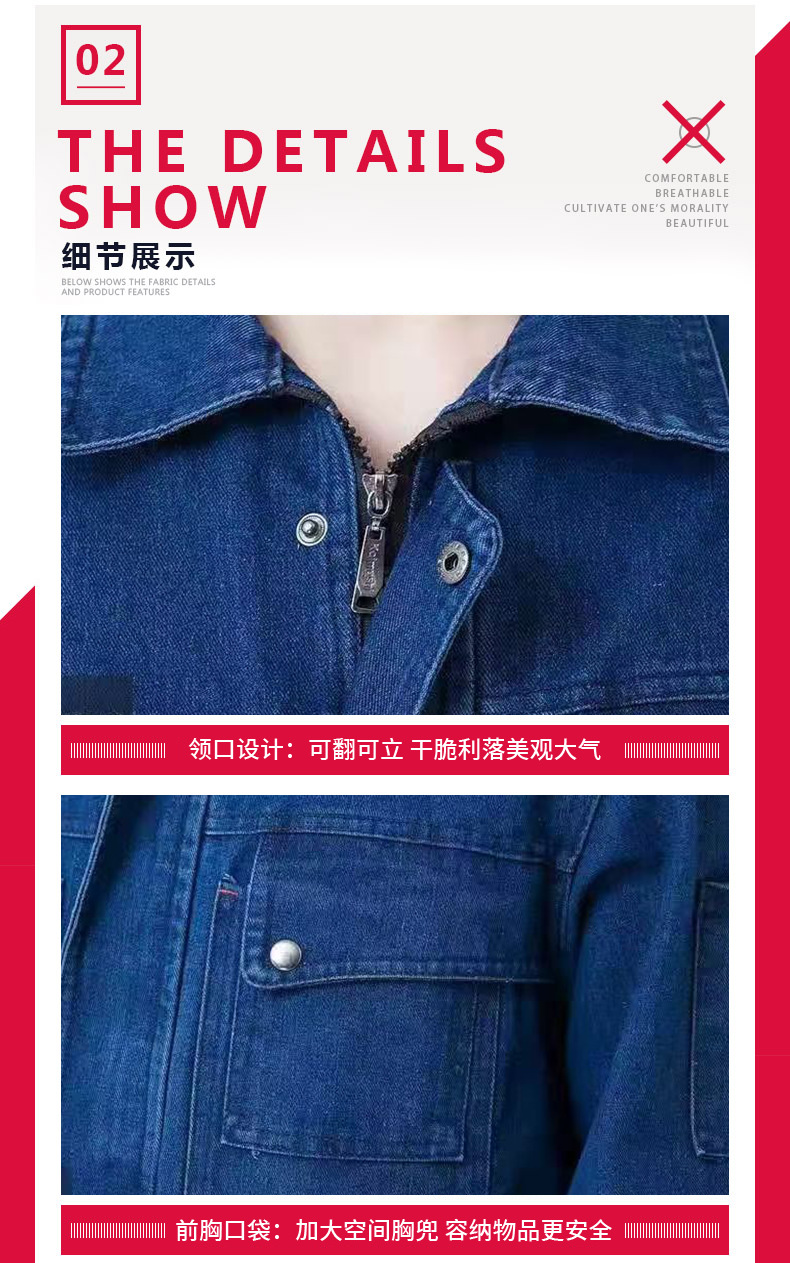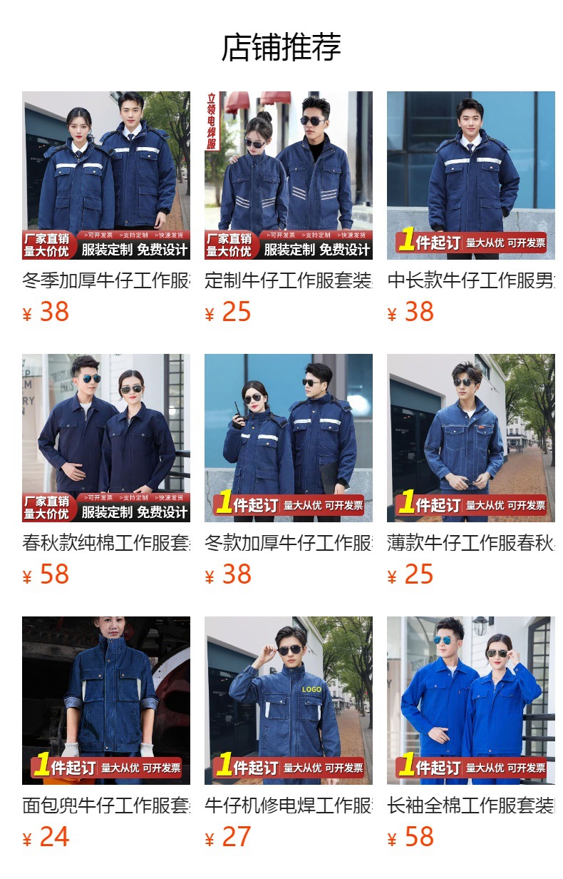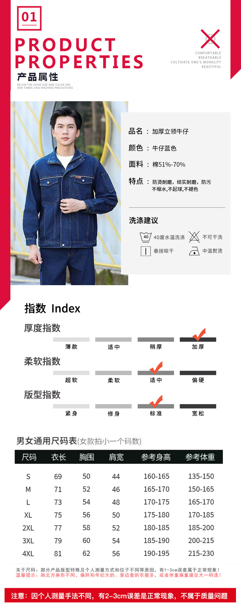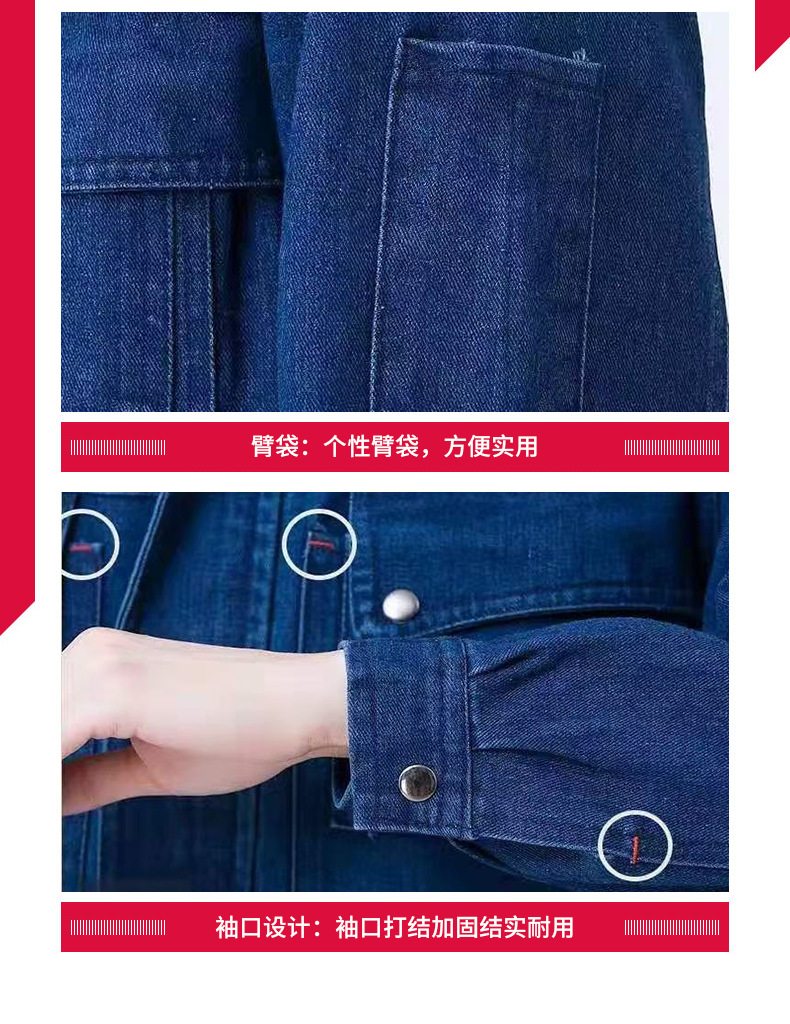 立领加厚牛仔工作服套装男工厂车间男女电焊机修服防烫耐磨劳保服