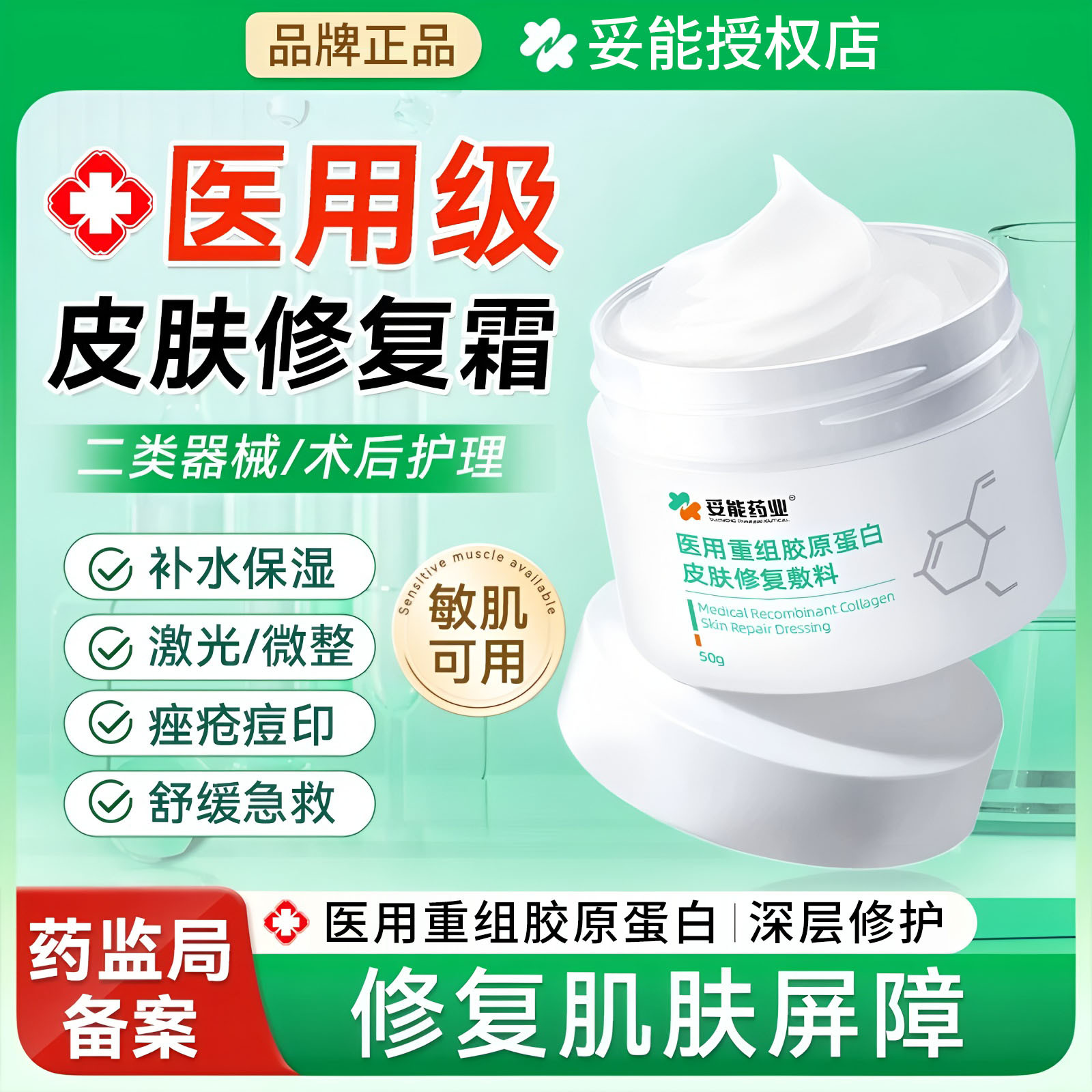 海氏海诺医用胶原蛋白面霜皮肤过敏瘙痒术后创面屏障修复软膏面霜