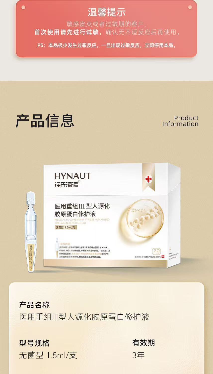 海氏海诺医用重组III型胶原蛋白液皮肤创面护理械字号产品