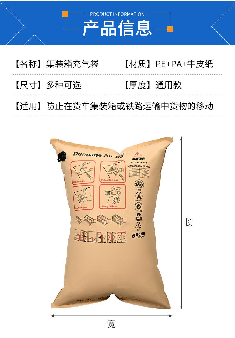 现货集装箱充气袋牛皮纸pp填充间隙海运货物货柜缓冲填充气袋定制